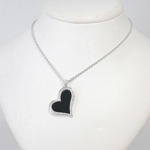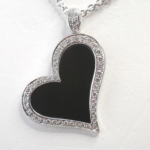 Piaget Excellent Condition 750WG Limelight Onyx and Diamond Heart Necklace in 18k White Gold (G33L7000) Polished to New Condition [Pre-owned]