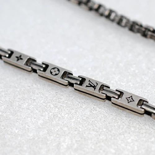 | コメント | クラシカルなシルバーカラーのアイテムにアンティーク調の加工を施してモダンに仕上げた「ネックレス・LV テーラー」。 一部のリンクにはメゾンを象徴するモノグラム・フラワーまたはLV イニシャルがブラックのパティーナで刻印され、同様に繊細なラインを施したリンクによってつがなれています。 バークラスプで開閉するスタイルです。 |