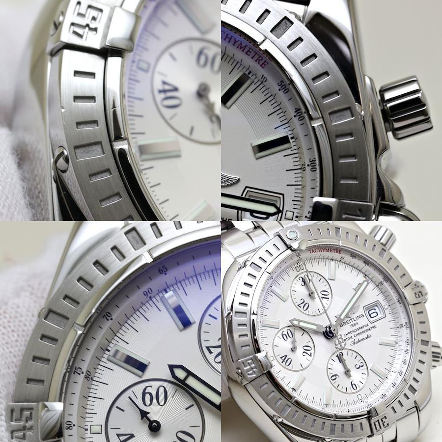 | | 重量 | 209.2g | | 仕様 | クロノグラフ・日付表示 | | ムーブメント | 自動巻き | | メンテナンス | 外装磨き仕上げ済、機械点検済 | | 付属品 | 保存箱、説明書、保証書 、クロノメーター証 | | 備考 | [ケース] 小傷少々 [ベゼル] 小傷少々 / 打痕 [裏蓋] 小傷 [バックル] 小傷 [ベルト/ブレスレット] 小傷少々 [ガラス/風防] きれいです [文字盤] きれいです