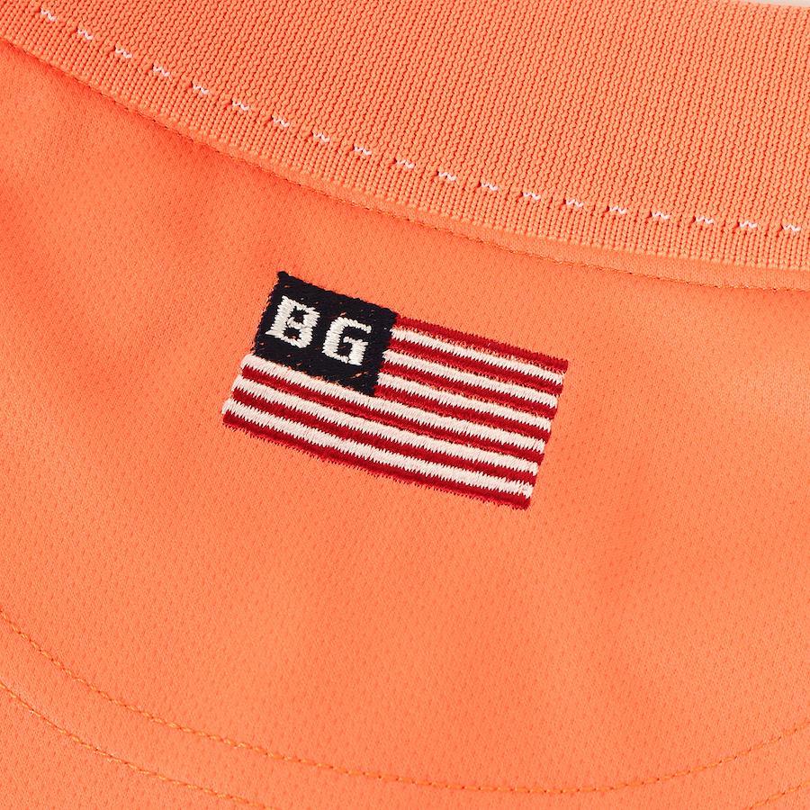 商品説明グラデーションカラーがあしらわれた伸縮性のあるポリエステルジャージー素材を使用し、ワンポイントブランドロゴが配されたポロシャツです。