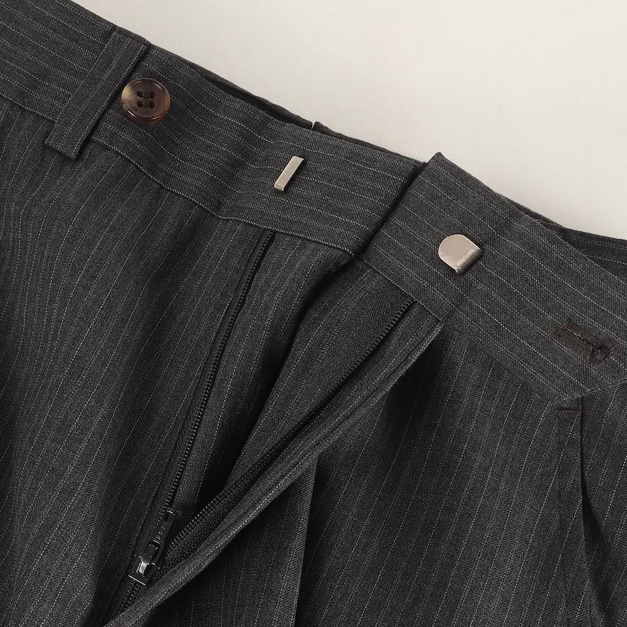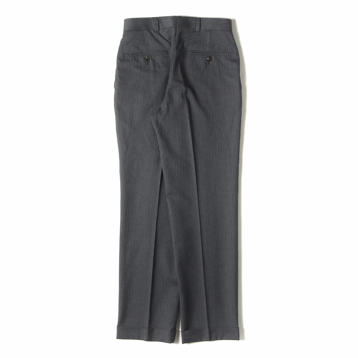 | 商品説明 | ・ストライプウール生地 ・ジッパーフライ ・ストレートシルエット ・裾ダブル仕様 ・内タグにネームが入ってます |