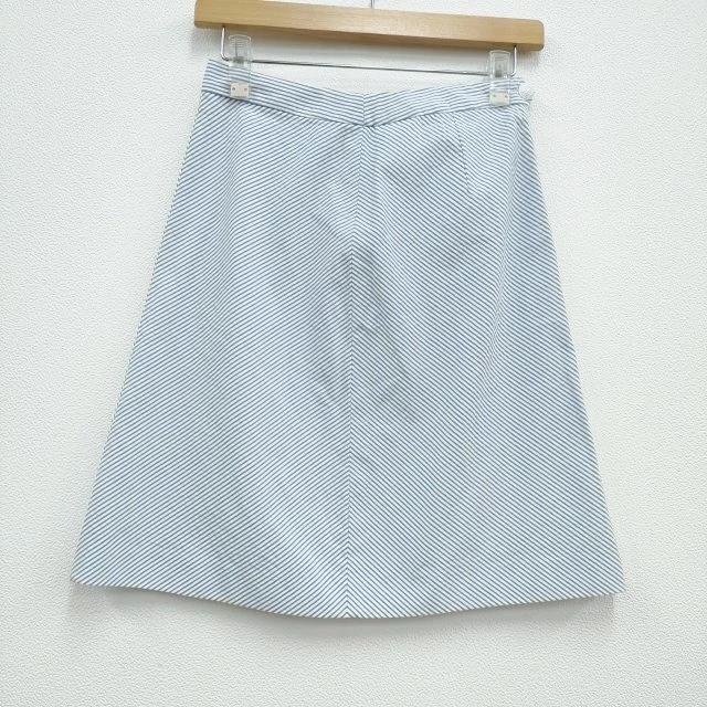 Brooks Brothers Red Fleece Bias Stripe Skirt, Size 0, Light Blue and White, Pre-owned, 3-0604M