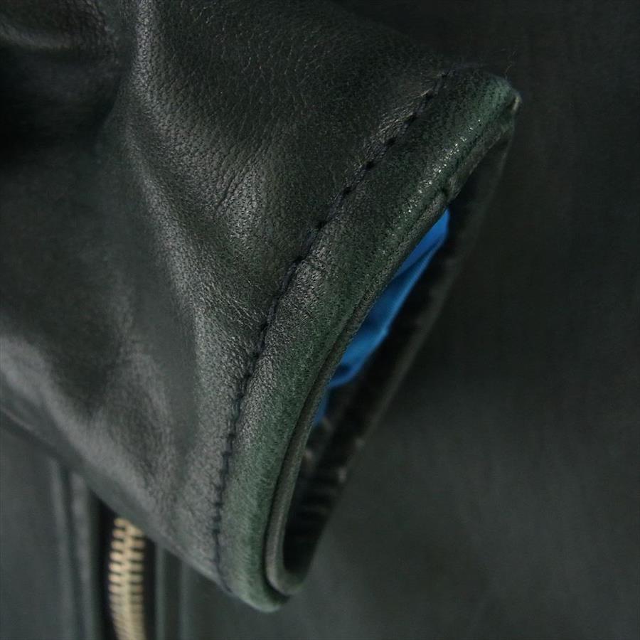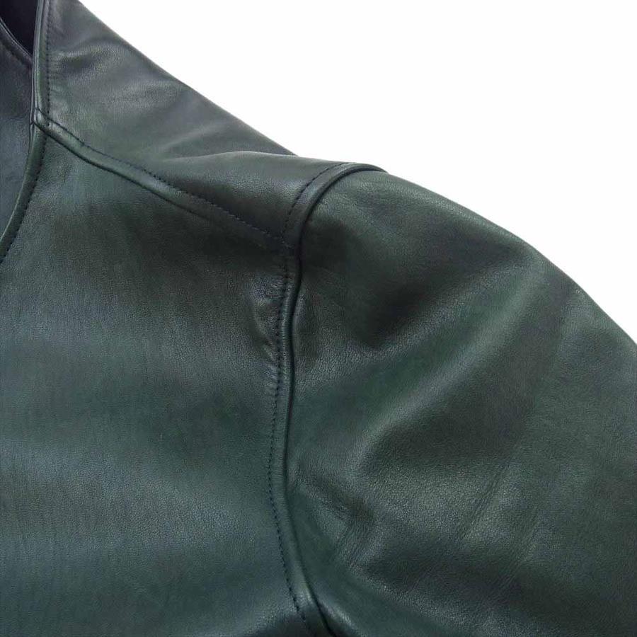 | 商品名 | 5080 ホースハイド レザー 馬革 ノーカラー ジップアップ アランジャケット ダークグリーン |