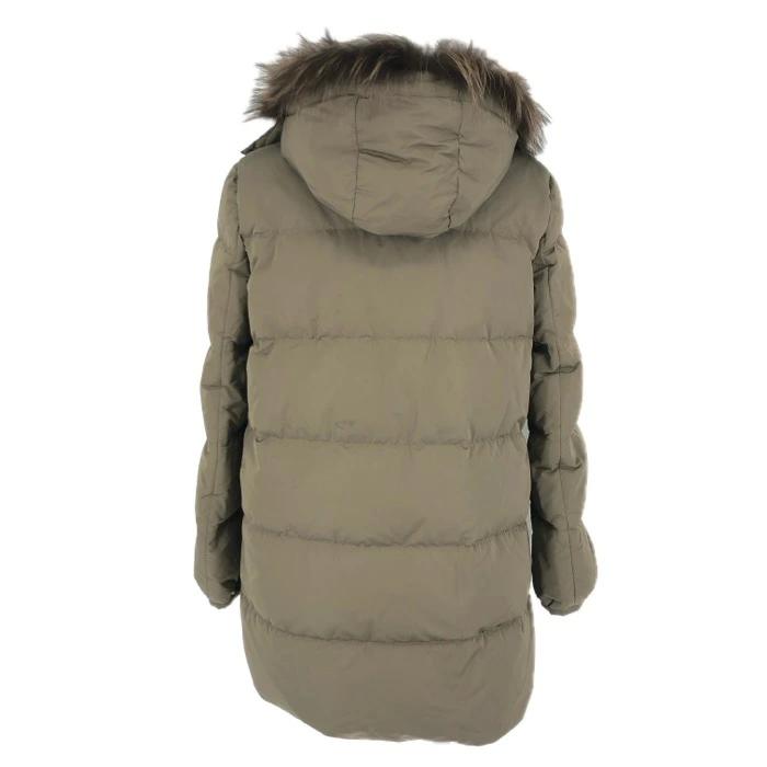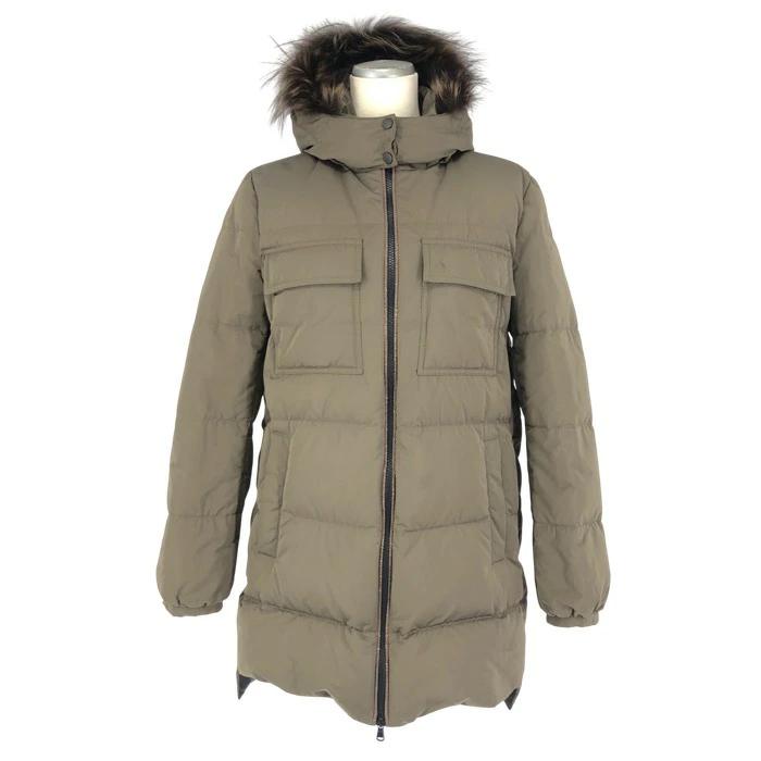 | 商品説明 | 【素材】 ポリエステル70%シルク30% 裏地:ナイロン100% 中綿:グースダウン100% フォックスファー 【季節】 冬 【商品補足説明】※サイズは平置採寸です。 フード取り外し可。ボタンポケットあり。 所々に2.5cm以下の汚れあり。 |