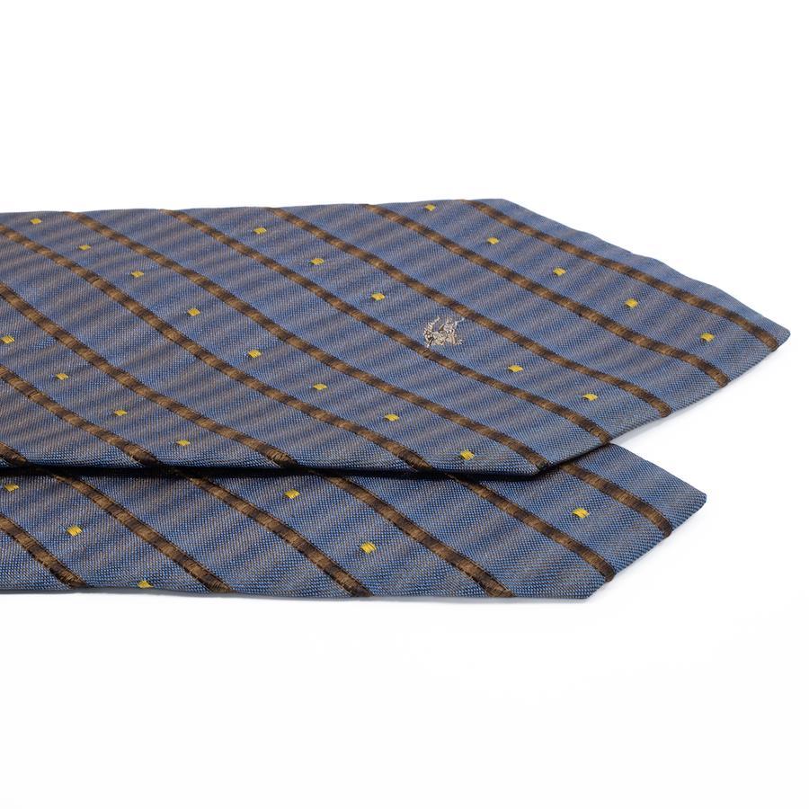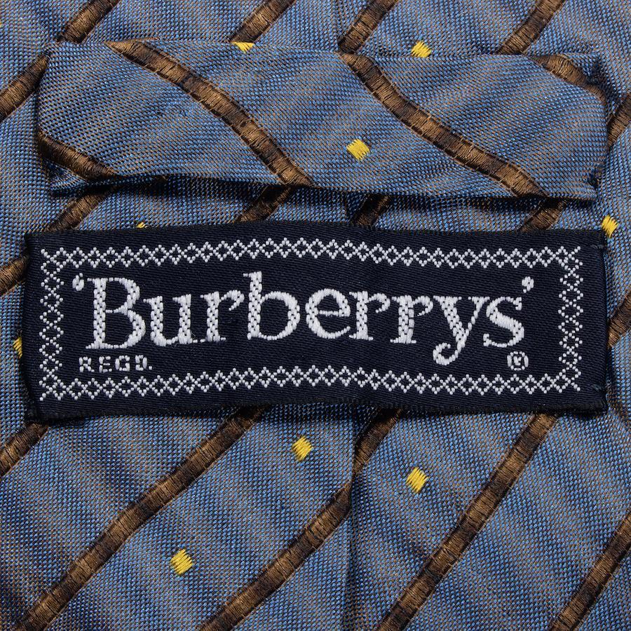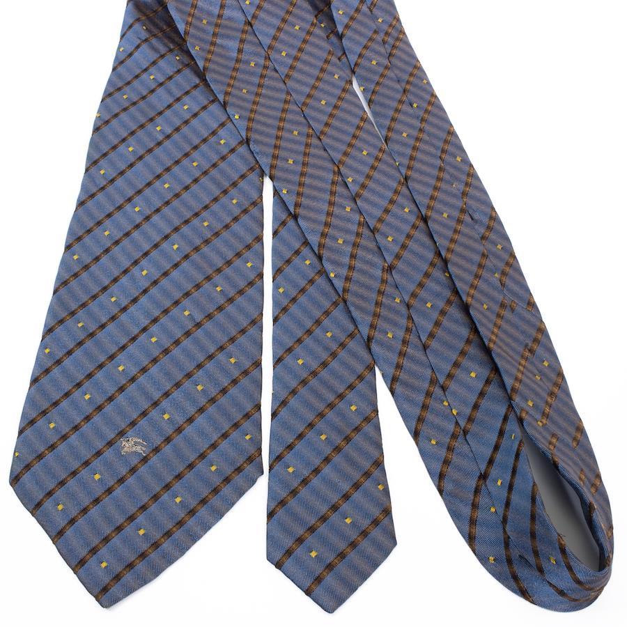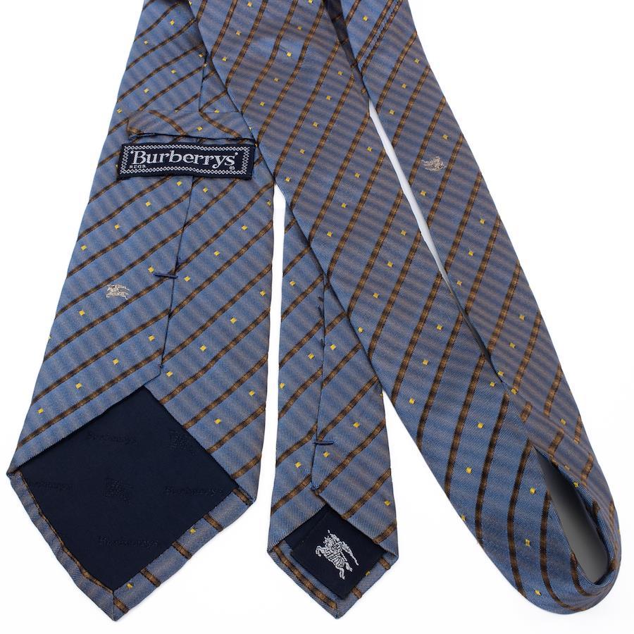 こちらは、青と茶の光が交錯する、バーバリーのネクタイでございます。