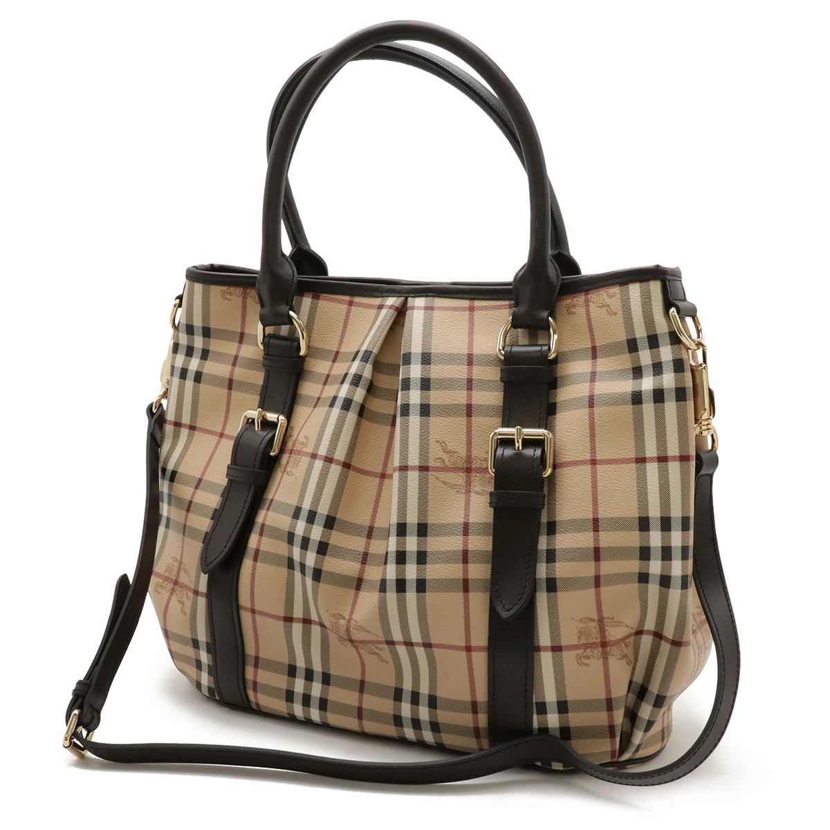 落ち着いたカラーリングにチェック柄が上品なバーバリー定番のトートバッグでございます。