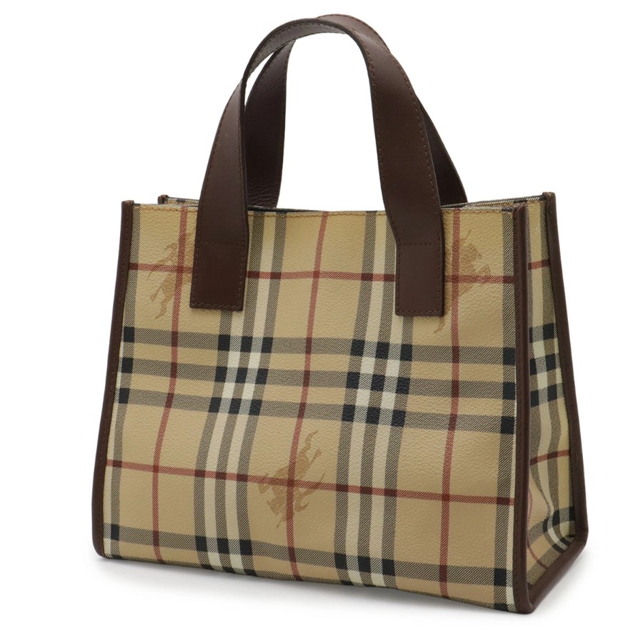 落ち着いたカラーリングにチェック柄が上品なバーバリー定番のハンドバッグでございます。