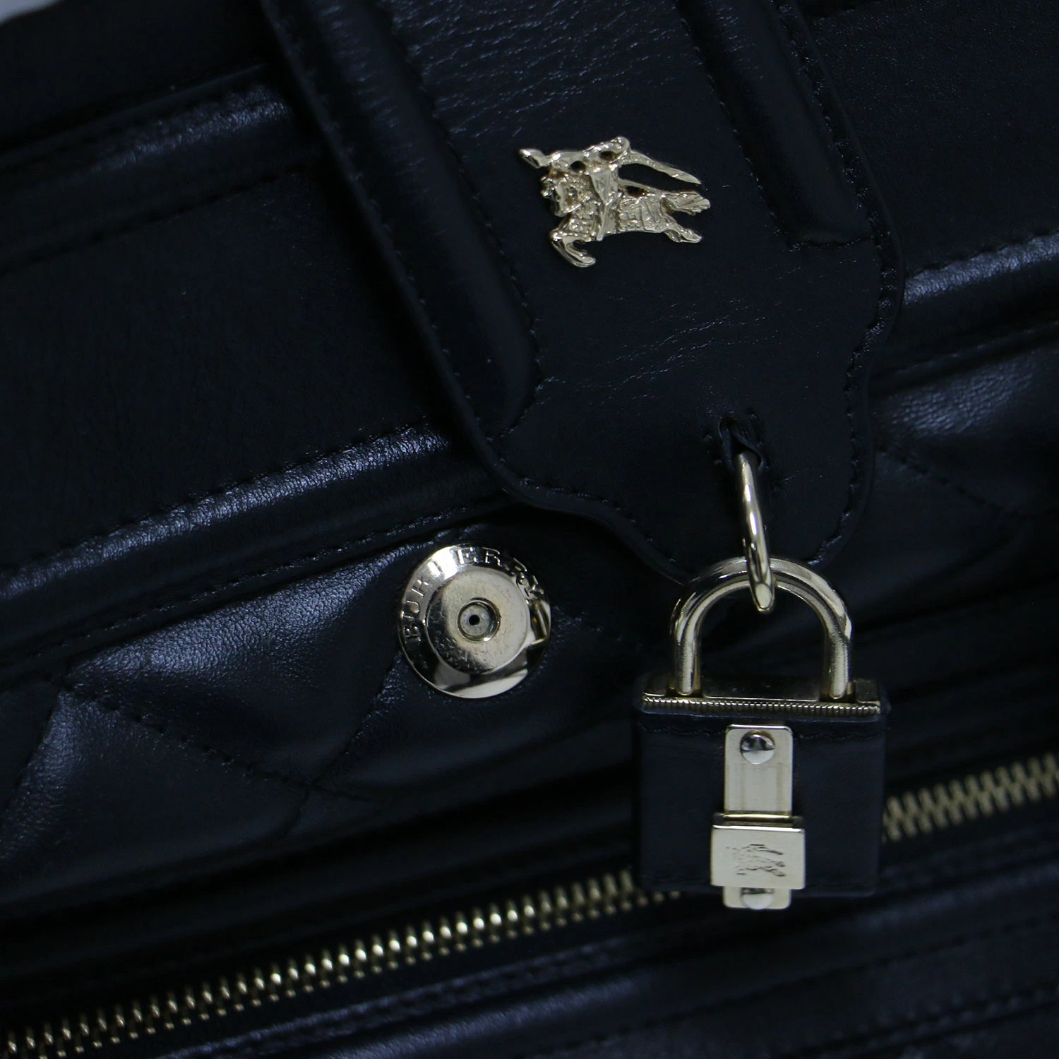 ◆フロントには存在感のあるパドロックとクロシェット(鍵カバー)を装備、バーバリーの伝統的なバッグデザインを彷彿とさせる、クラシカルかつエッジの効いたディテール