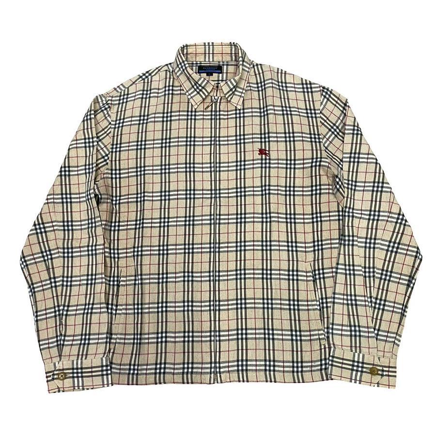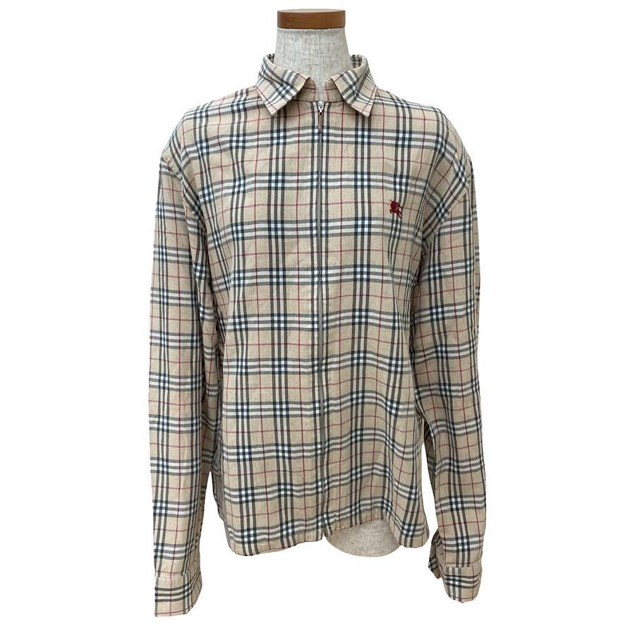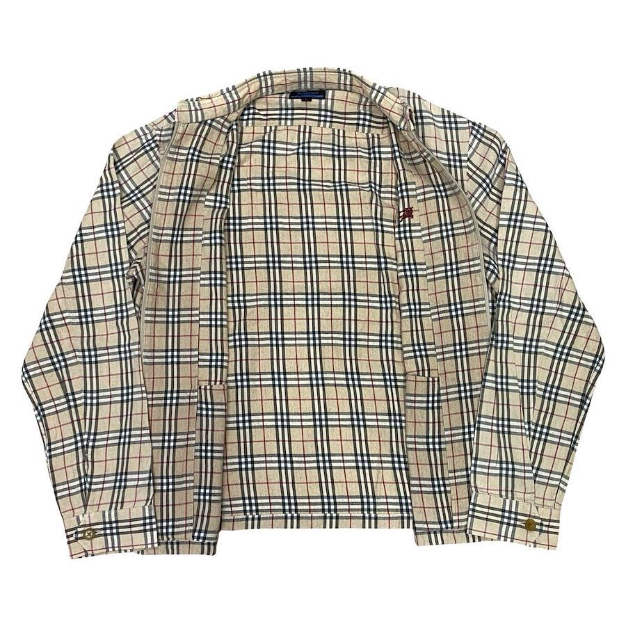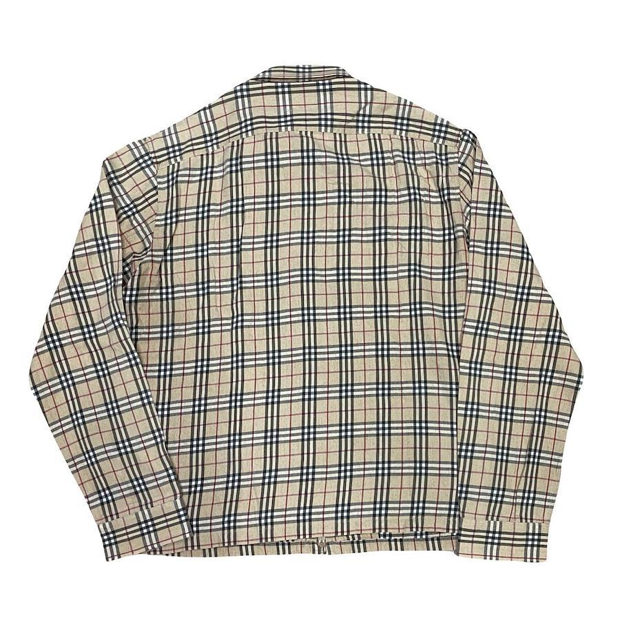 BURBERRY Blue Label Shadow Horse Embroidered Nova Check Cotton Long Sleeve Shirt, Men's, Beige, Size L, 134-3