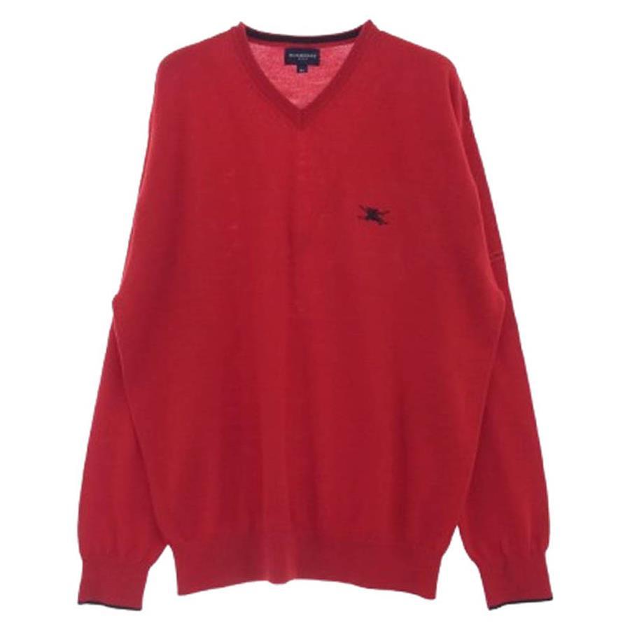 BURBERRY BFT50-110-16 GOLF Embroidered Logo V-Neck Sweater, Red, Size M [Pre-owned]
