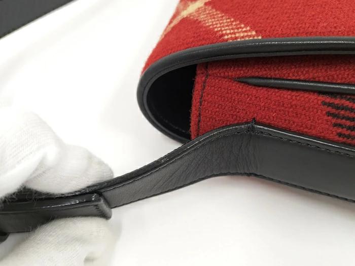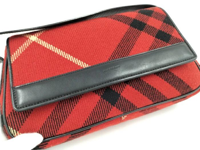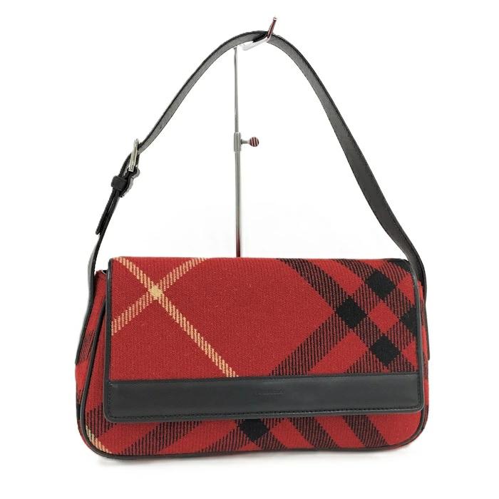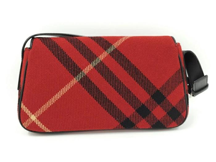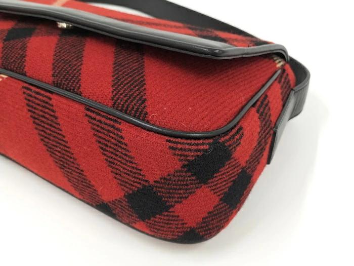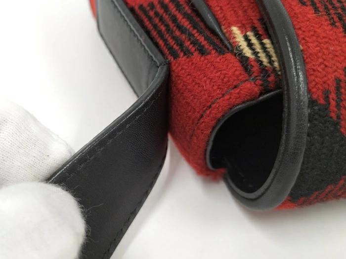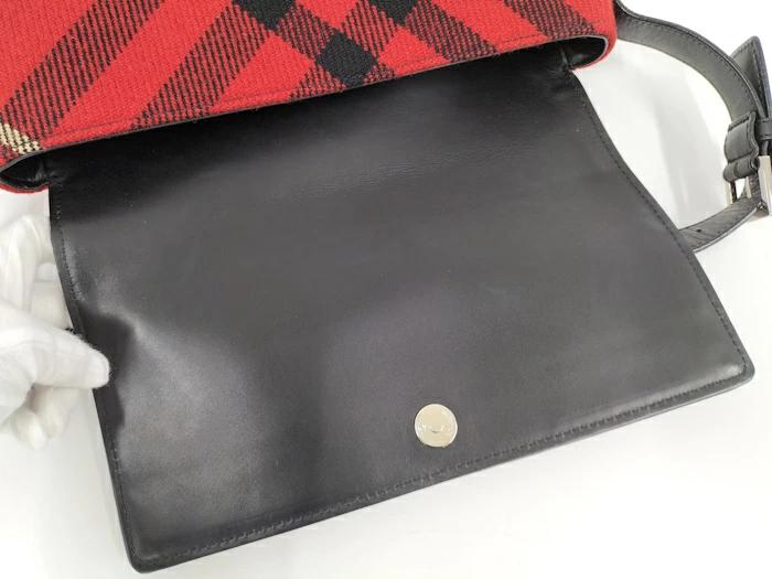 BURBERRY One-Shoulder Bag Leather Wool Red Black