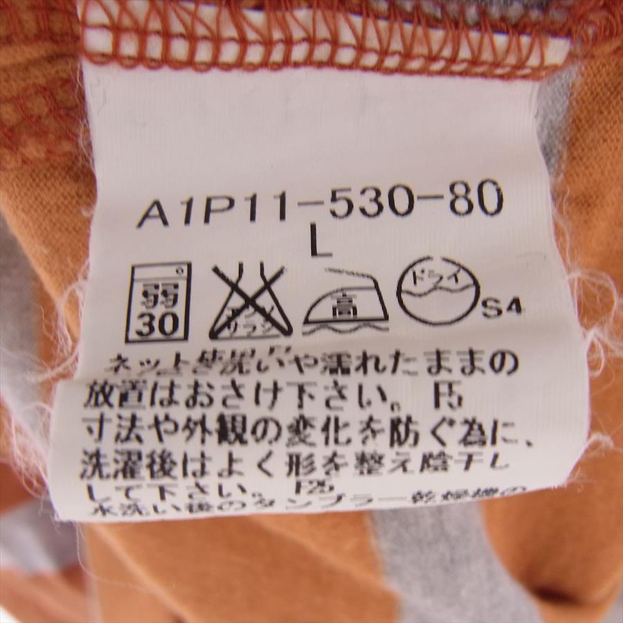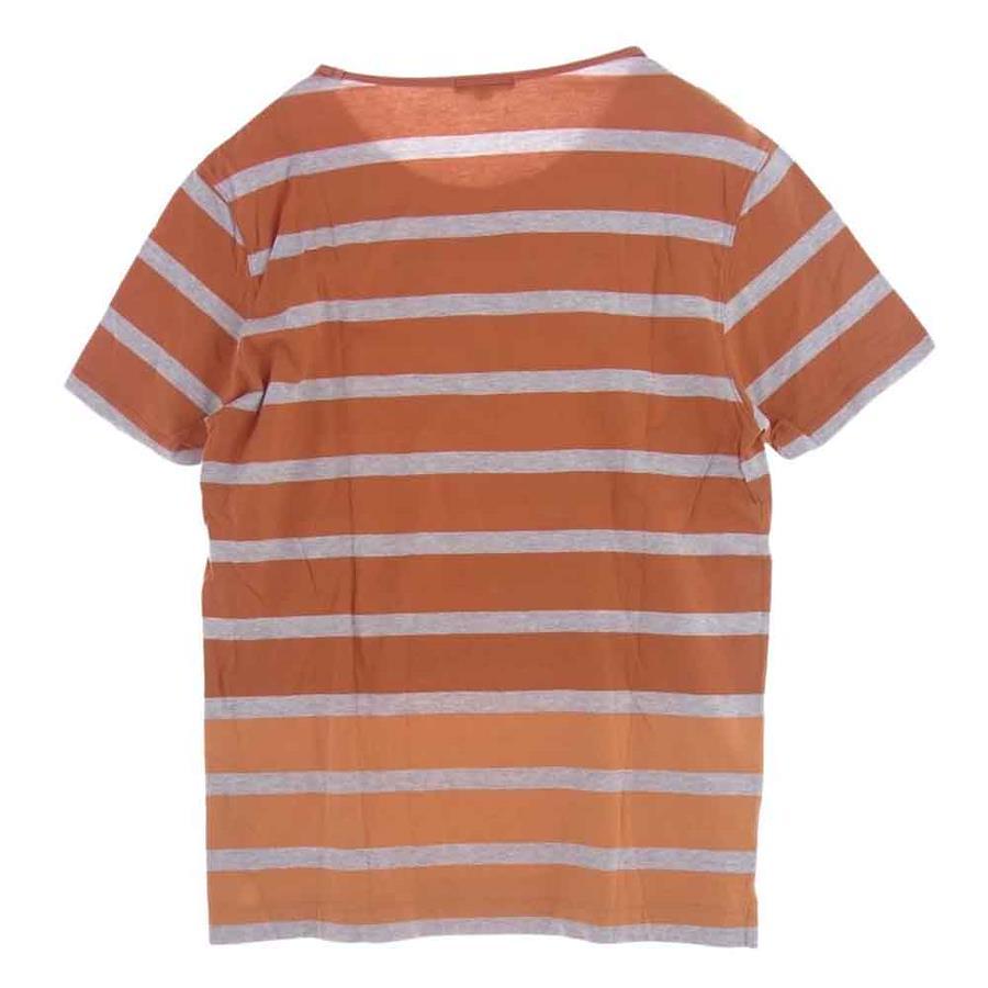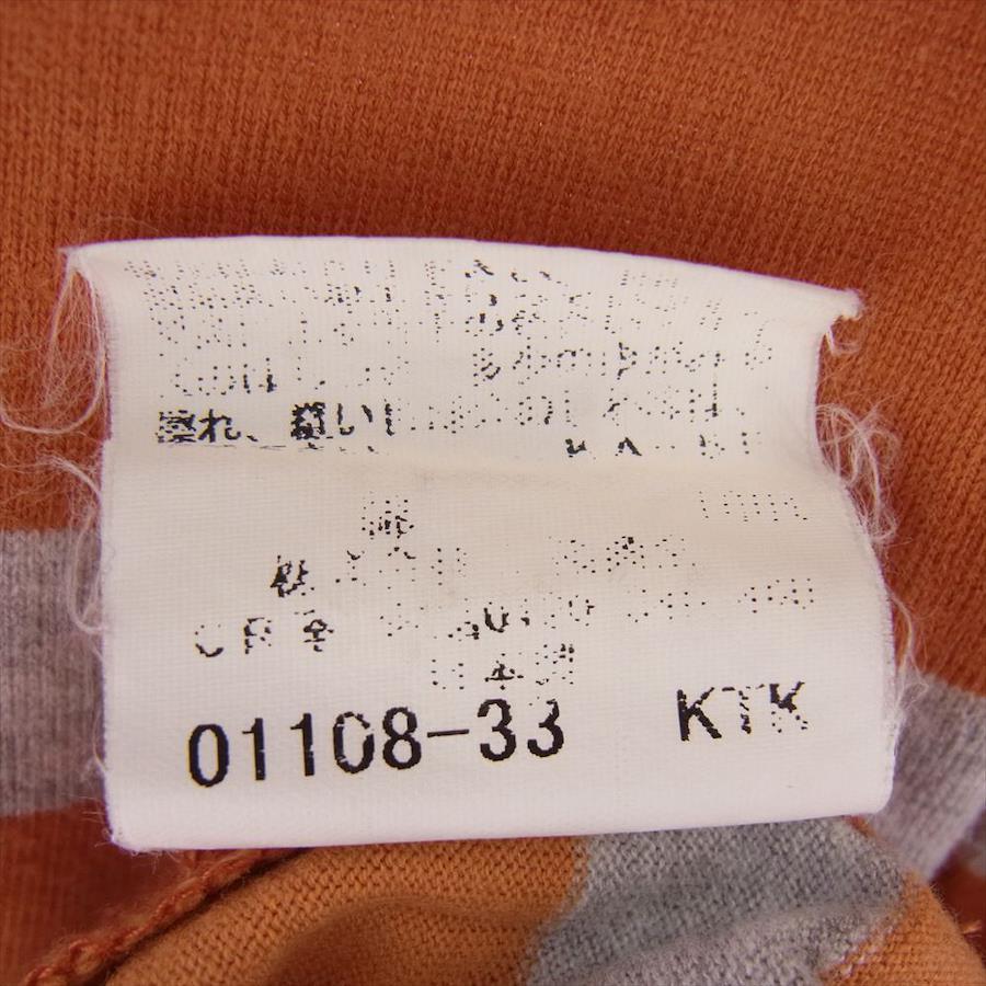 オレンジ系 x グレー系【モデル】刺繍 ボーダー Tシャツ カットソー 半袖