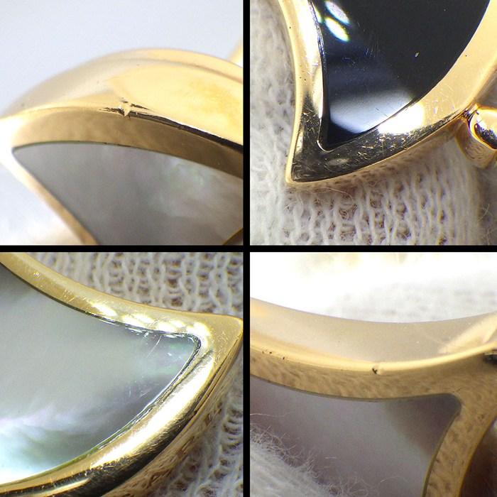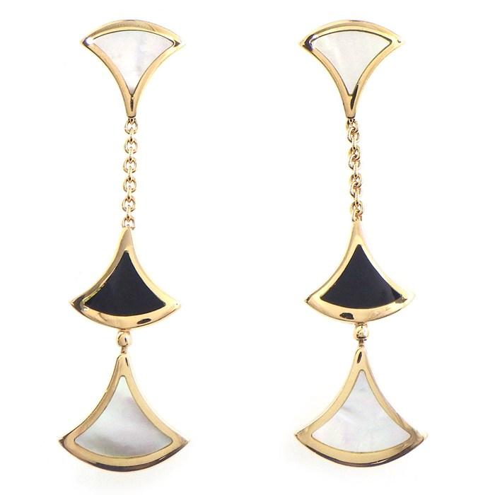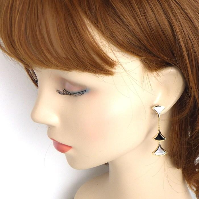 BVLGARI ピアス ディーヴァドリーム 3モチーフ 扇型 スウィング ドロップ オニキス ホワイト シェル K18PG 【中古】