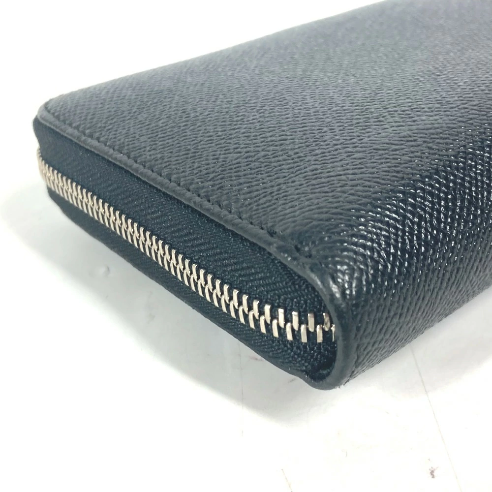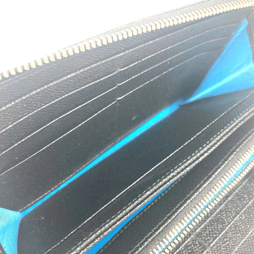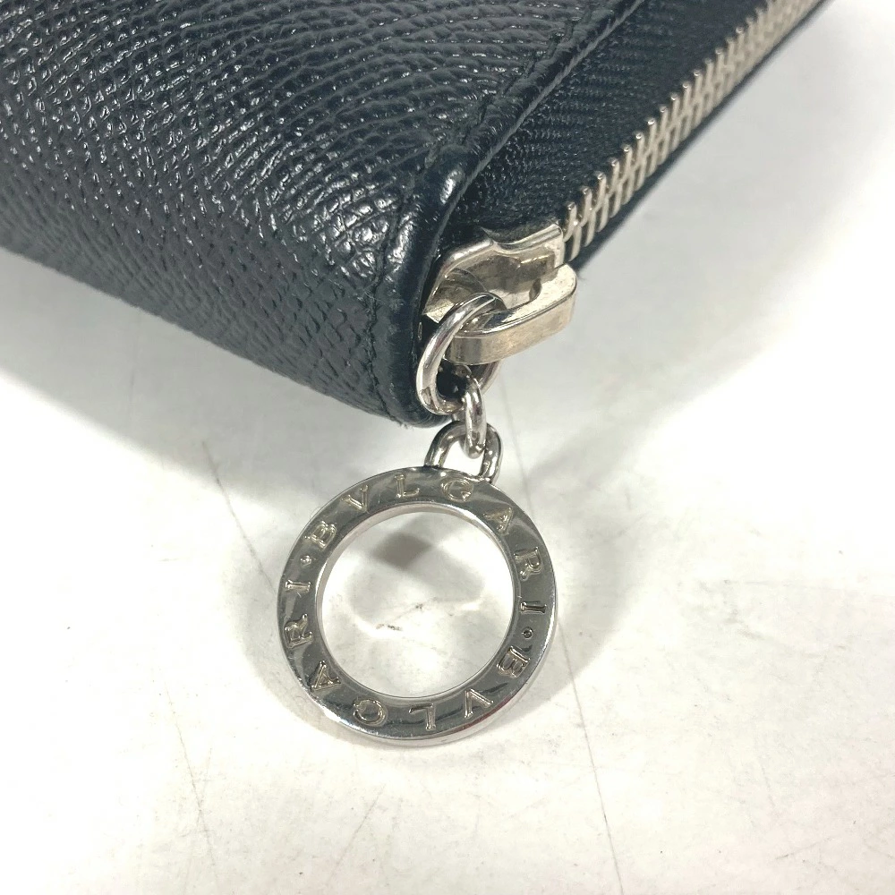 BVLGARI BVLGARI BVLGARI Round Zip Long Wallet Leather Unisex Black [Pre-owned]