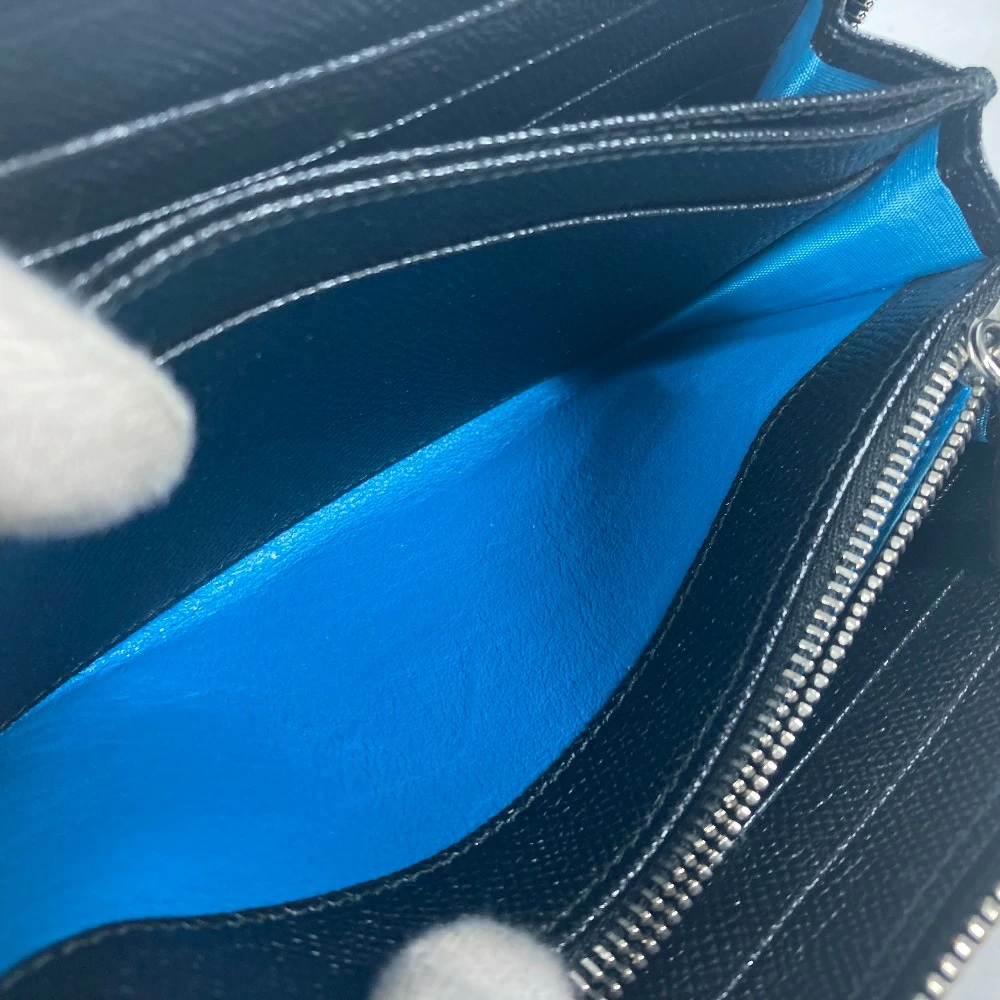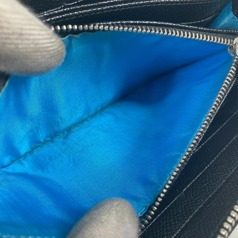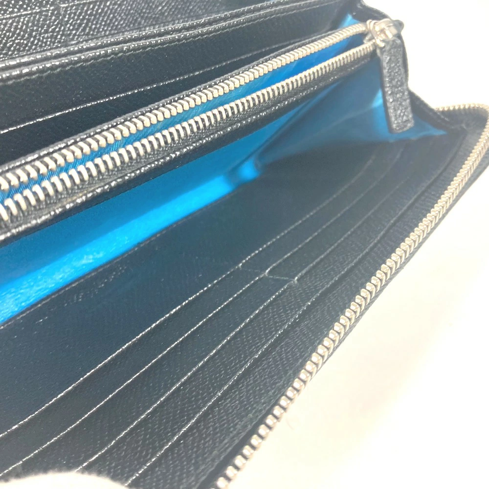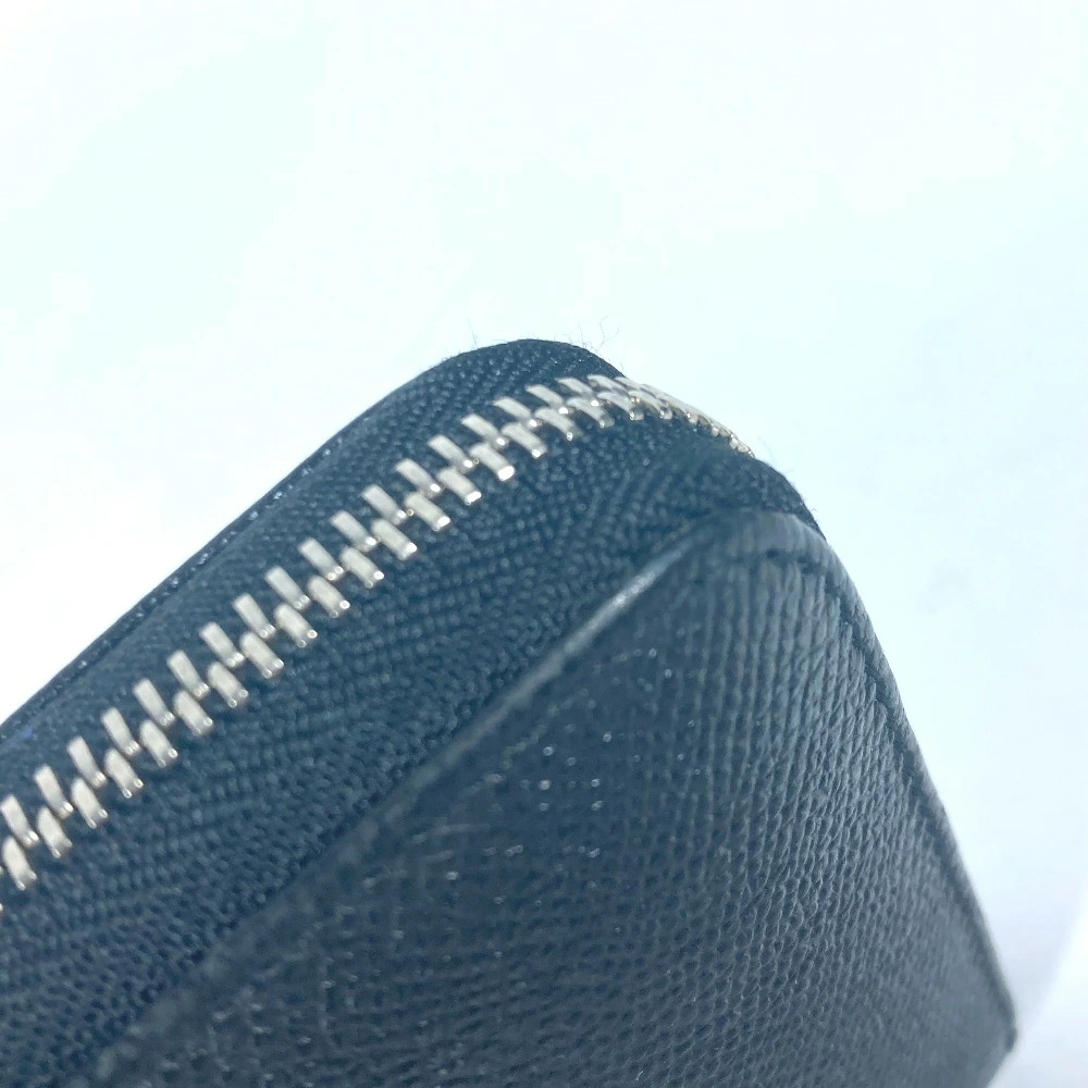 BVLGARI BVLGARI BVLGARI Round Zip Long Wallet Leather Unisex Black [Pre-owned]