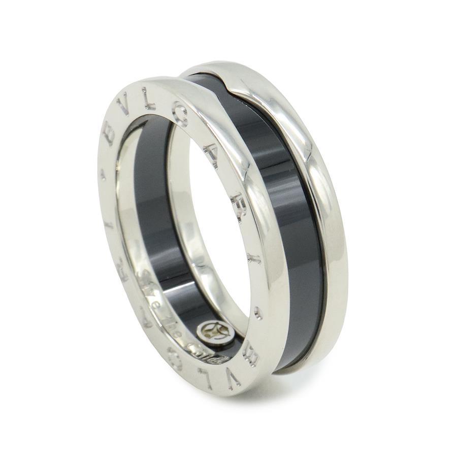 【コメント】ロゴの塗装剥げがございますが、弊社提携工房にて磨き済みですのでとても綺麗な状態のお品物でございます。ブルガリの人気定番商品、B-zero1リングにセラミックを使用したリングでございます。