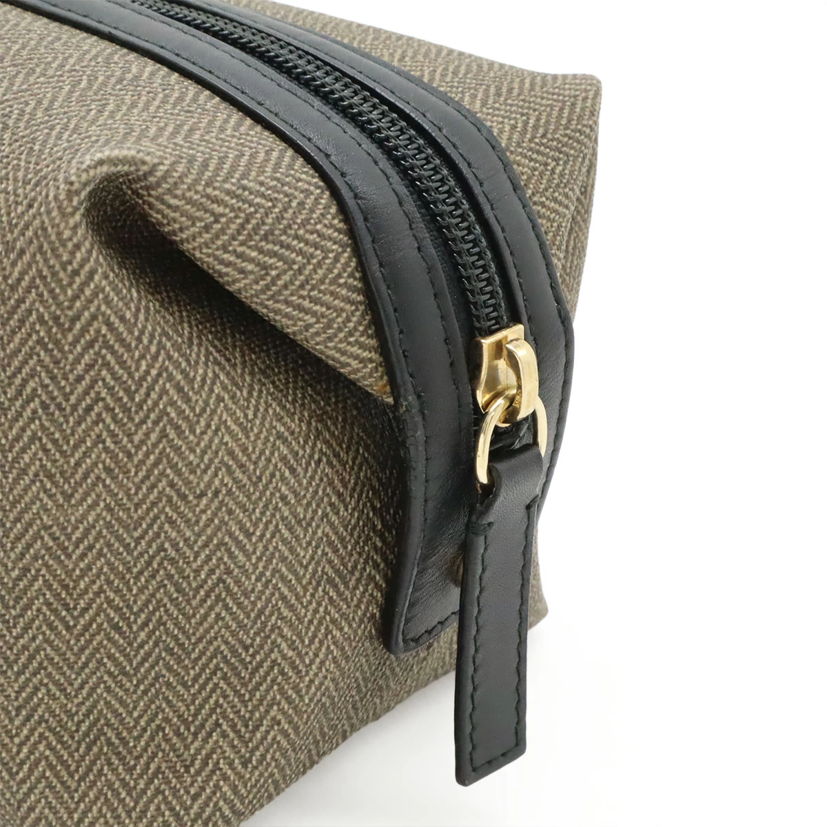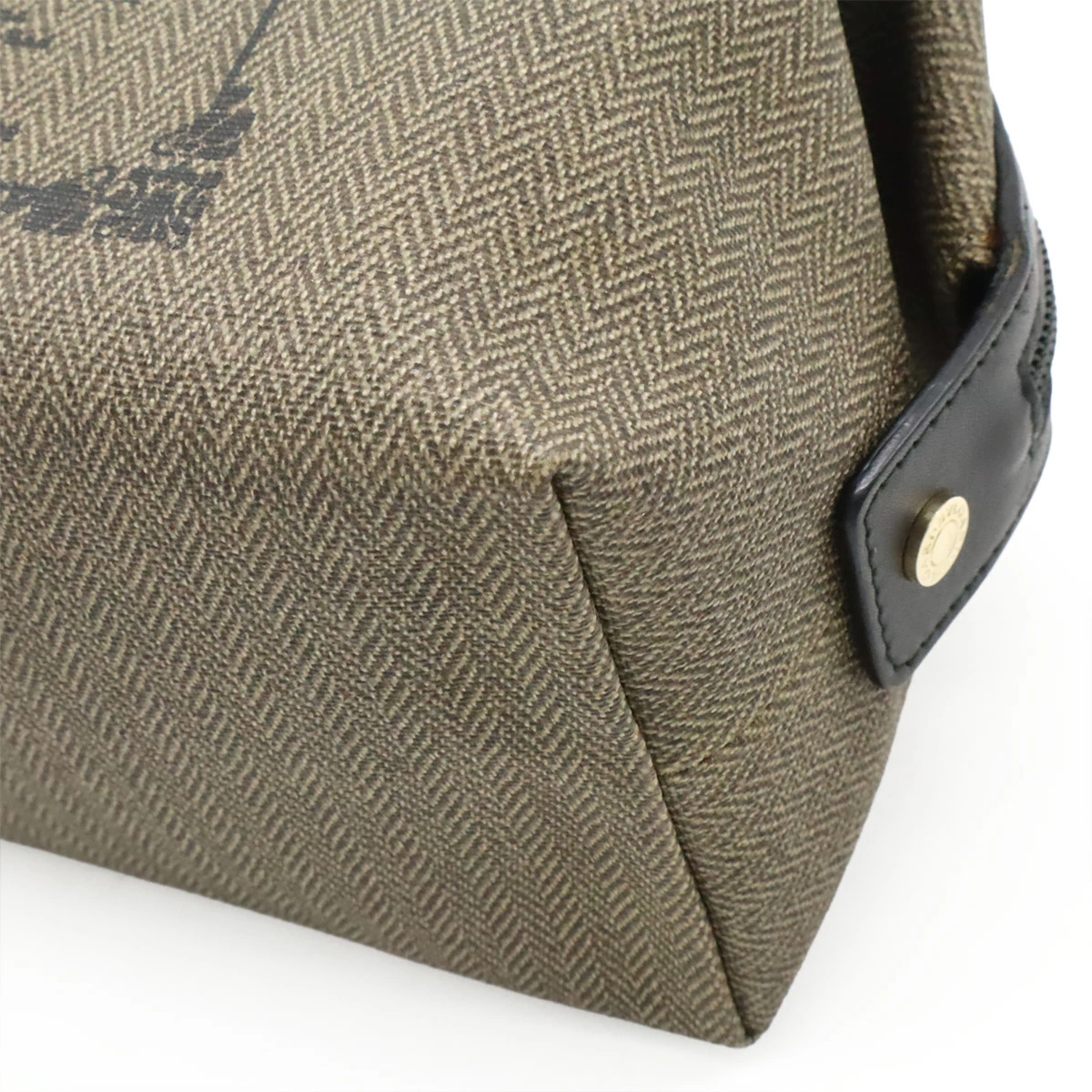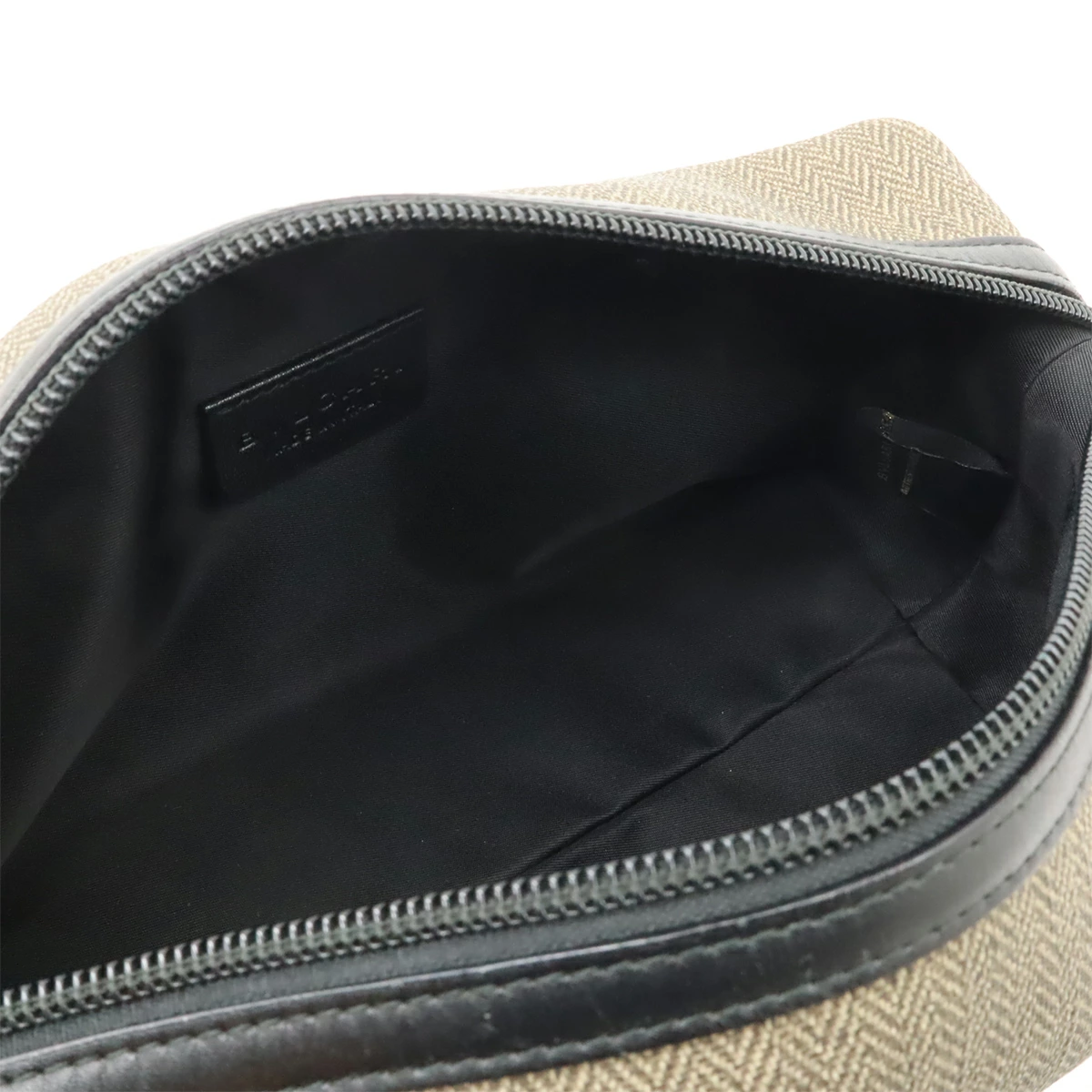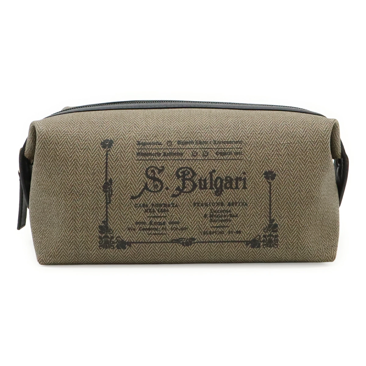 ツイード地のようなデザインにロゴプリントがアクセントになったブルガリらしいシックでハイセンスなポーチ。
