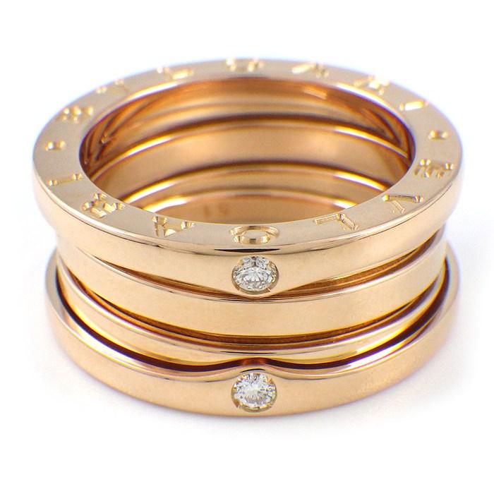 ■商品名BVLGARI リング B-zero1 ビーゼロワン 2バンド ロゴ 4ポイント ダイヤモンド K18PG 10号 / #51 【中古】