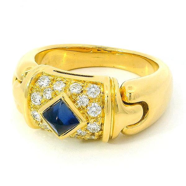 BVLGARI Celtica Sapphire and Diamond Ring, 18K Yellow Gold, Size 8.
