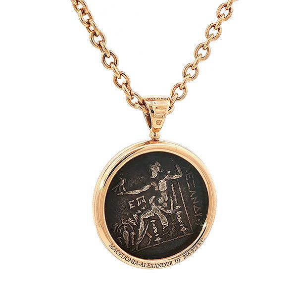 Category: JewelryType: NecklaceBrand Name: BVLGARIChain Length: 64.0cmHead Size: 33.0 x 45.3 x 7.2mmGemstone: NoneStamp: BVLGARI CA**** Au750 MADE IN ITALY MACEDONIA-ALEXANDER III 336-323 b.C.Weight: 63.3gMaterial: 18K Gold (18K Pink Gold)List Price: NoneAccessories: Original box and repair certificateCondition: A
