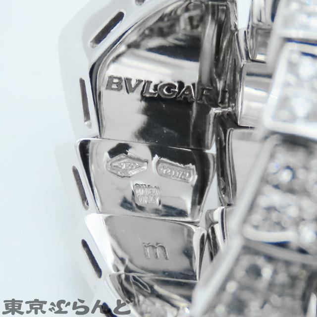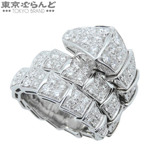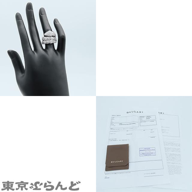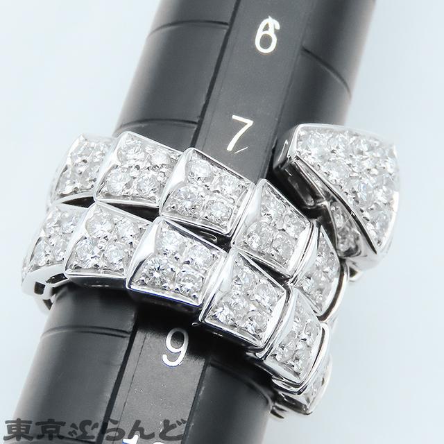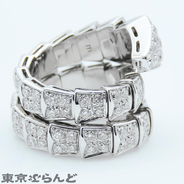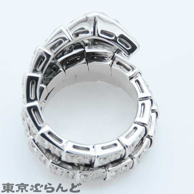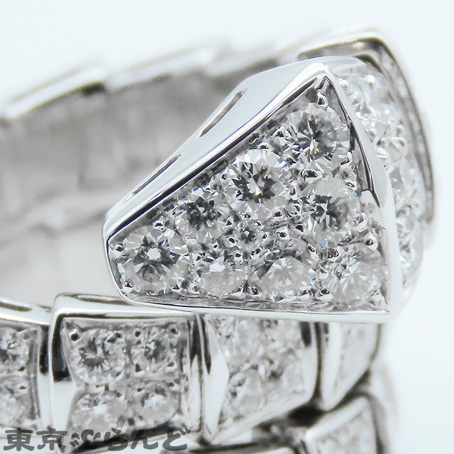 BVLGARI Serpenti Viper Ring 345226, 18K White Gold, Double Coil, Size 8, Full Pavé Diamonds, Medium, Polished