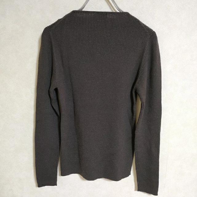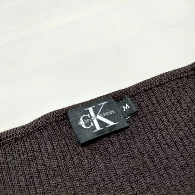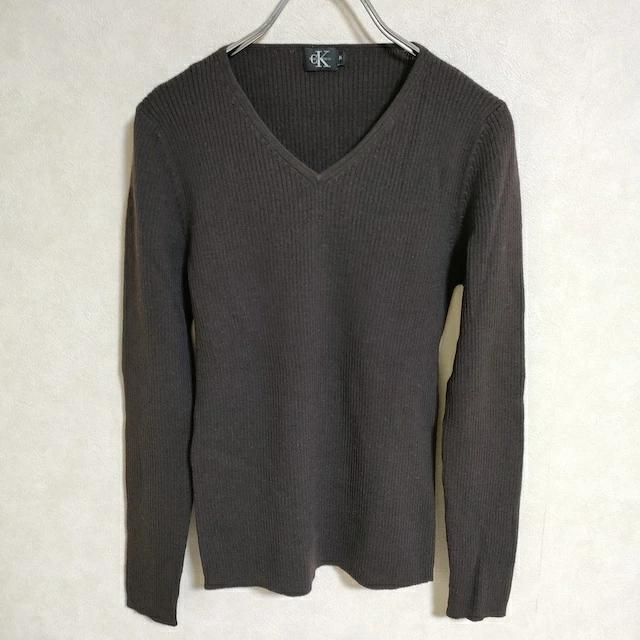 Pre-owned Calvin Klein wool ribbed V-neck knit in brown, women's, model 3-1121T