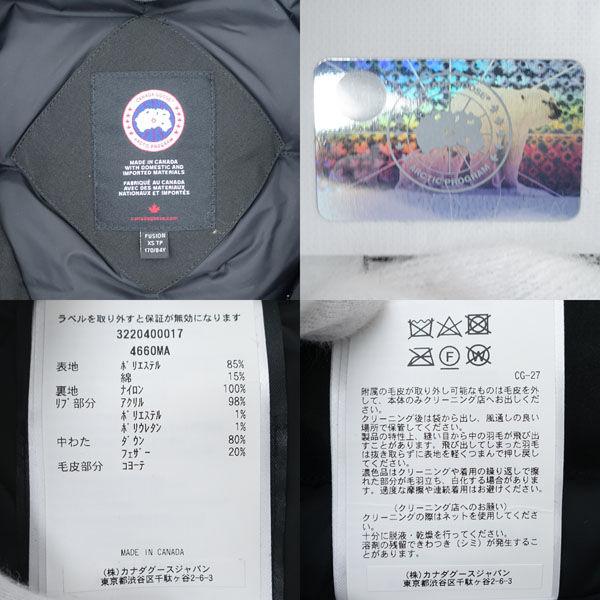 ・メーカー :CANADA GOOSE / カナダグース・製品型番 :4660MA・サイズ :表記サイズ:XS,肩幅 (約cm):54,身幅 (約cm):60,着丈 (約cm):78,袖丈 (約cm) リブ除く:84,・色(柄)の系統:ブラック ワインレッド ホワイト ブルー・デザイン :(メンズ)アウター/ジャケット・素材 :表地ポリエステル85%めん% 裏地ナイロン100% 中綿ダウン80%フェザー20% 毛皮コヨーテ・付属品 :ハンガー・衣装カバー・タグ各種・明細書(個人情報なし)-------------商品状態-------------・ランク :A・詳細 :・USED品ですので、軽微なスレはありますが比較的状態の良い品です。