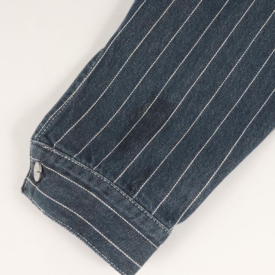 | 商品説明 | ピンストライプをあしらった3rdタイプのデニムジャケットです。ボディにはユーズド加工が施されております。 |