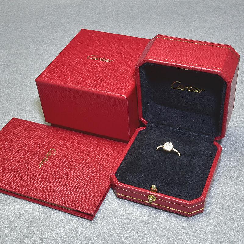 Brand: CartierProduct Name: Etincel de Cartier RingModel Number: B4225052Size: #52, Actual Measurement: 12, Arm Width: 1.5mm, Motif: 7.7mm x 7.7mmStamp: Cartier 52, Serial Number: Au750Material: 18K Gold, DiamondWeight: 2.3gList PriceAccessories: Box, Warranty CardCondition: AThere are small scratches on the arm that are visible due to light reflection.Comment: This item has been authenticated and is authentic.There is a hallmark on the outside of the arm, but it is not a scratch.