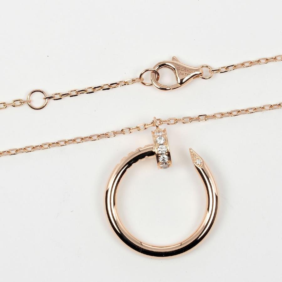 Brand: CARTIERProduct Name: NecklaceModel Name: JUSTE UN CLOUSuitable for: WomenSerial Number: QGZ8**Material: 18K Pink Gold with DiamondsWeight: Approx. 5.66gAccessories: Dust Box, Outer Box, Certificate of PurchaseDimensions: Neck Circumference: Approx. 40cmTop: Approx. W18.3mm x H22.6mmCondition: Rank ABrand New, PolishedNotes: Please feel free to contact us if you have any questions about the condition of the item.*The condition of the item is indicated according to our standards.