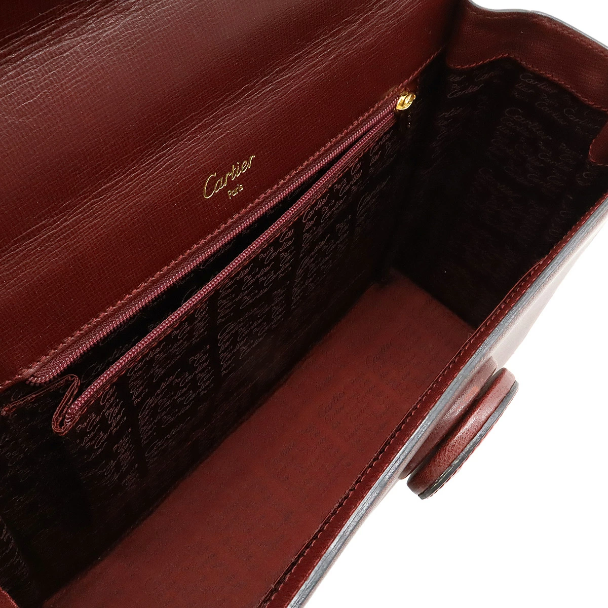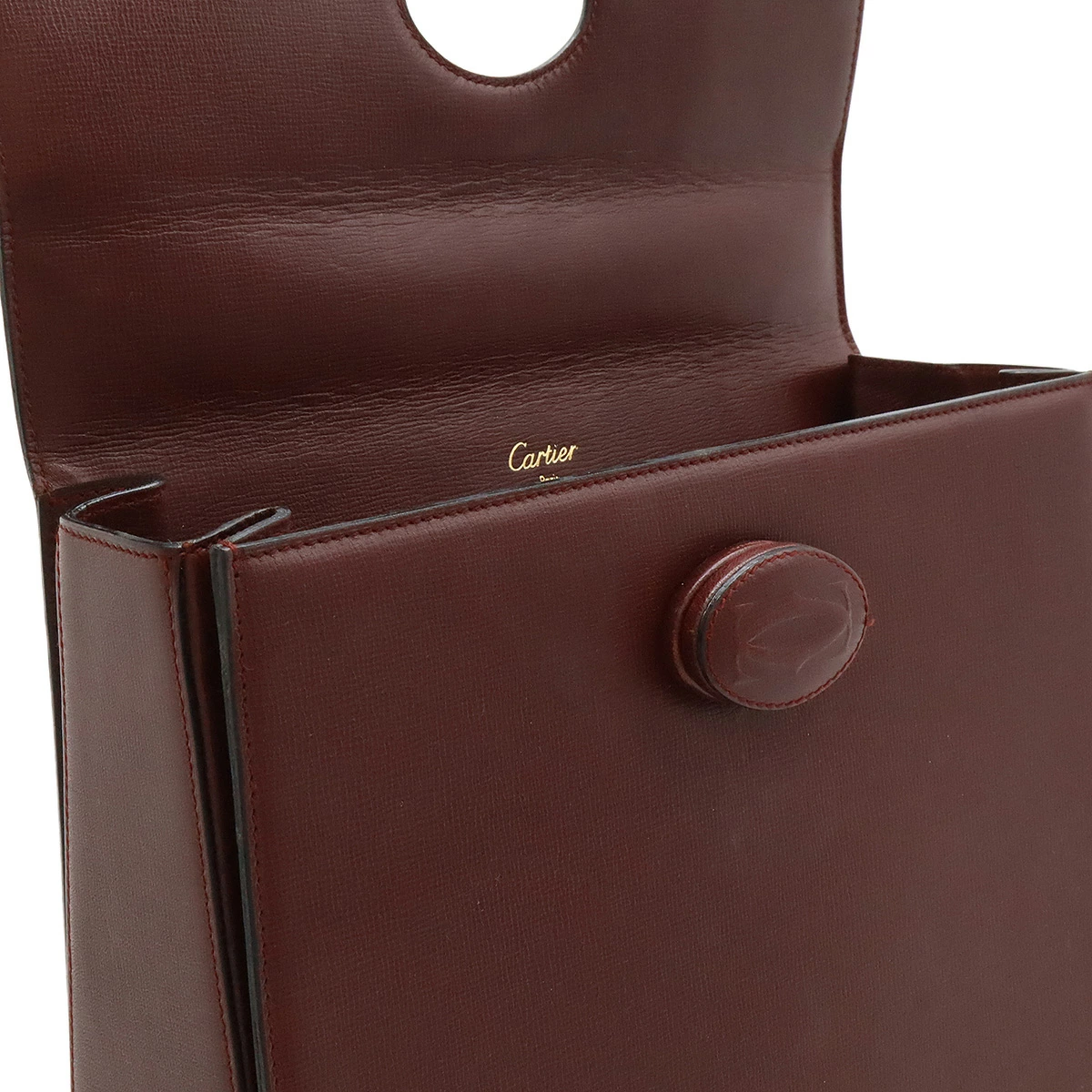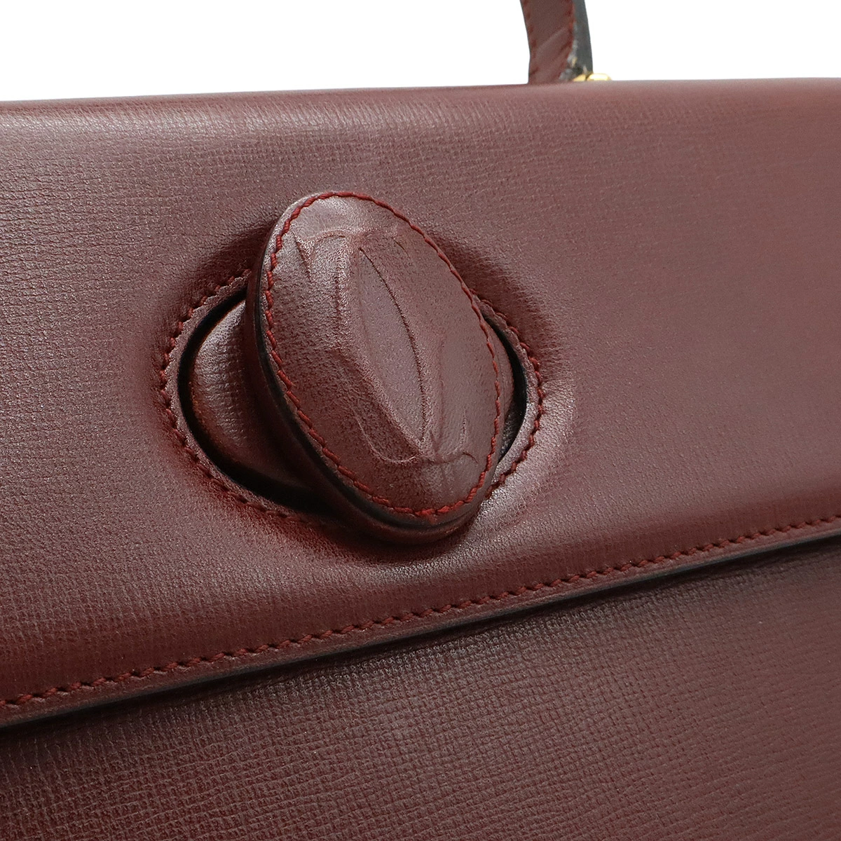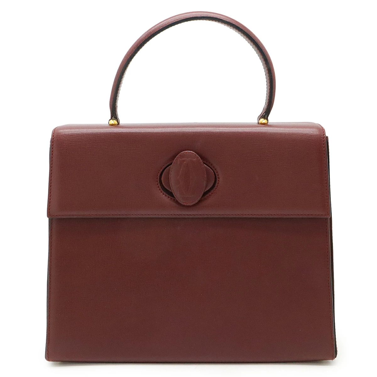 カルティエらしいボルドーカラーが上品で高級感溢れるハンドバッグでございます。
