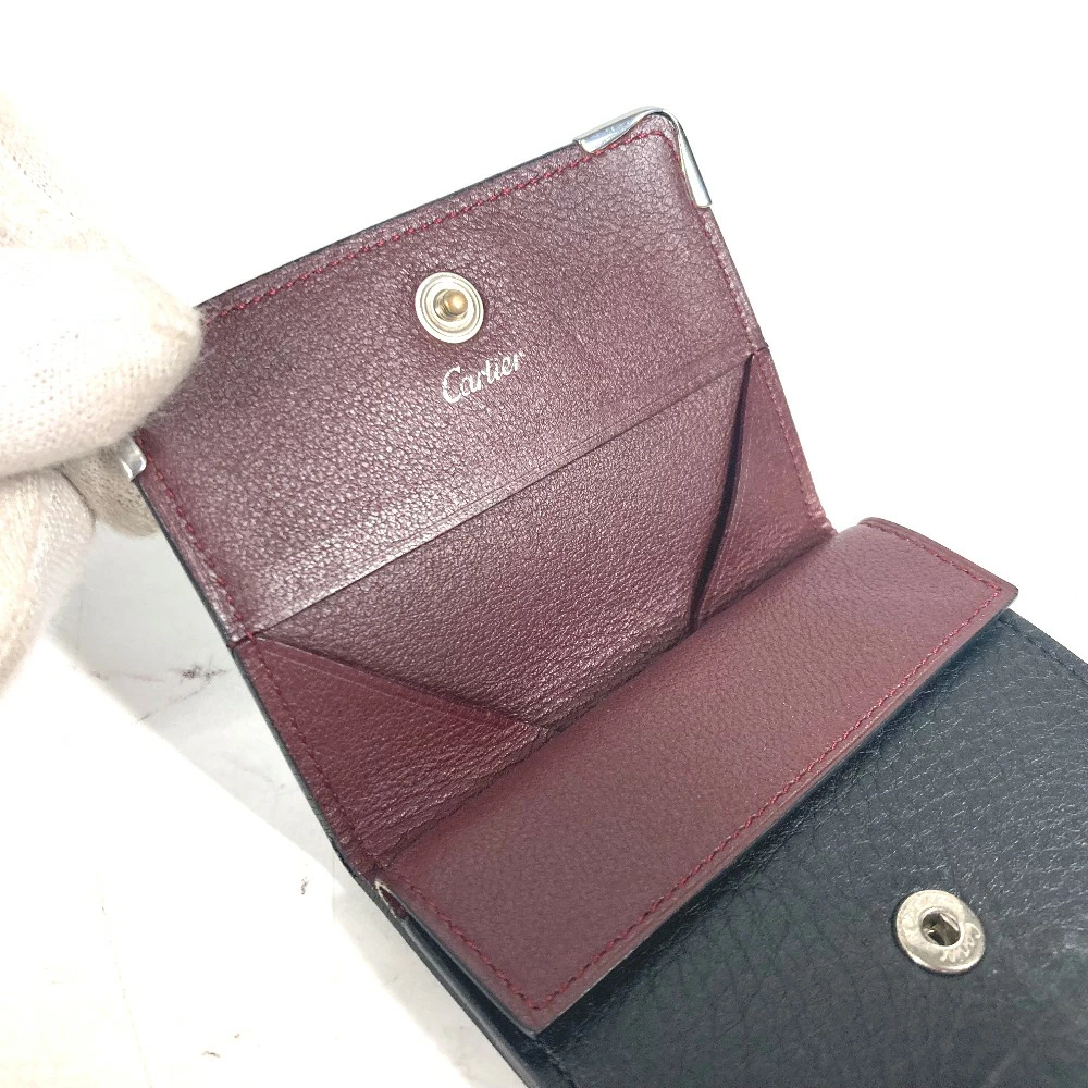 CARTIER Must Line Logo Wallet/Coin Purse/Coin Case, Leather, Unisex, Black [Pre-owned]