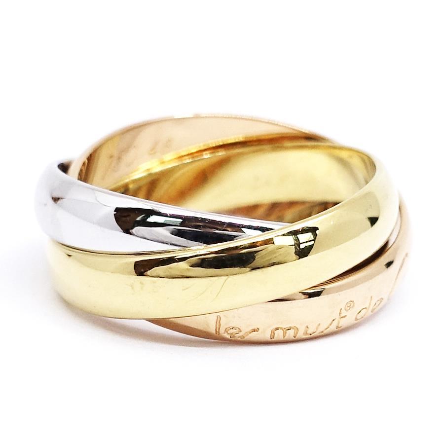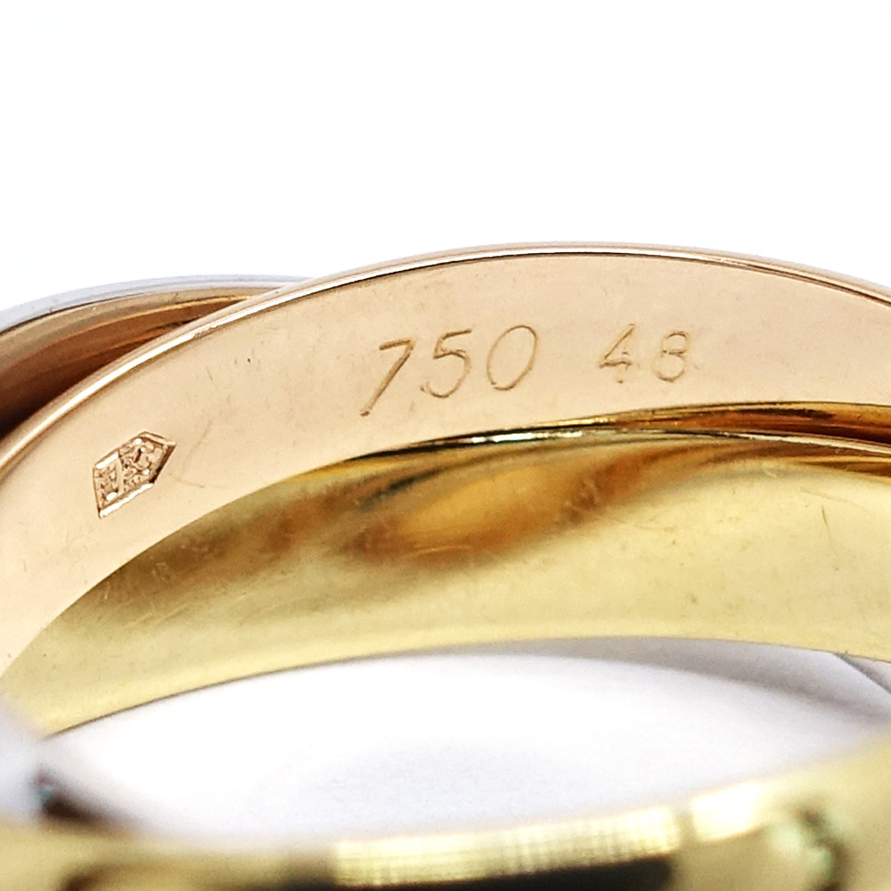 Product Rank: AProduct Condition: There are very slight scratches that are hard to see with the naked eye, but no noticeable damage is visible and the item is in very good condition.To maintain the proportions, we do not perform a new polish, but we do ultrasonically clean the item in our store.While we take great care, as this item is a display item in the store, very slight scratches and scuffs may occur.Please check the images for details and feel free to contact us with any questions.*The texture and color may appear different from the actual product depending on the shooting environment and your monitor settings.Brand: CartierProduct Name: Trinity Triple-Row, Three-Tone RingModel Number:Serial No.: *This is an older model and does not have a serial number engraved.Stamp:Material: K18PG (18K Pink Gold)K18WG (18K White Gold)K18YG (18K Yellow Gold)Stone:Color: Three-ToneSize: Marked Size: #48Ring Size: Approx. 8Width of Single Ring: Approx. 3.4mmWeight: Approx. 6.6gPrice:Accessories: Ring only