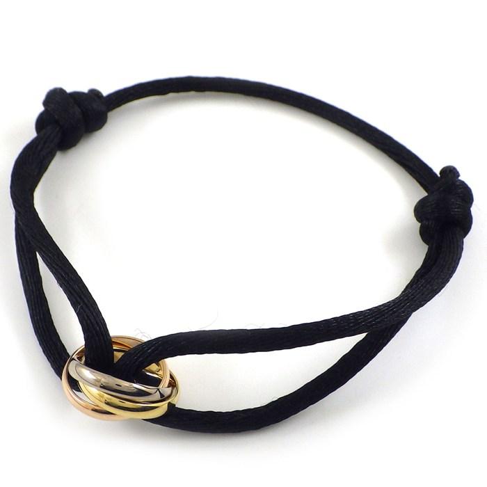 ■商品名Cartier ブレスレット トリニティ B6016700 オンライン限定 スリーカラー K18PG K18WG K18YG ブラック コットンコード 【中古】