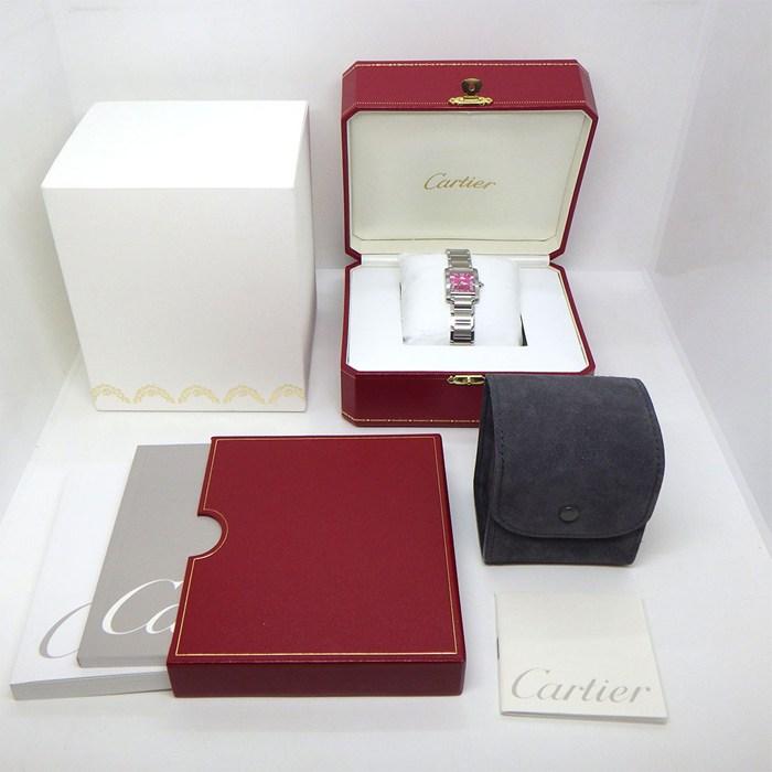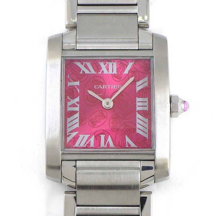 ■商品名Cartier 腕時計 タンクフランセーズ SM W51030Q3 2006年クリスマス限定 スクエア サンレイ 2Cロゴ ラズベリー文字盤 SS クオーツアナログ 【中古】