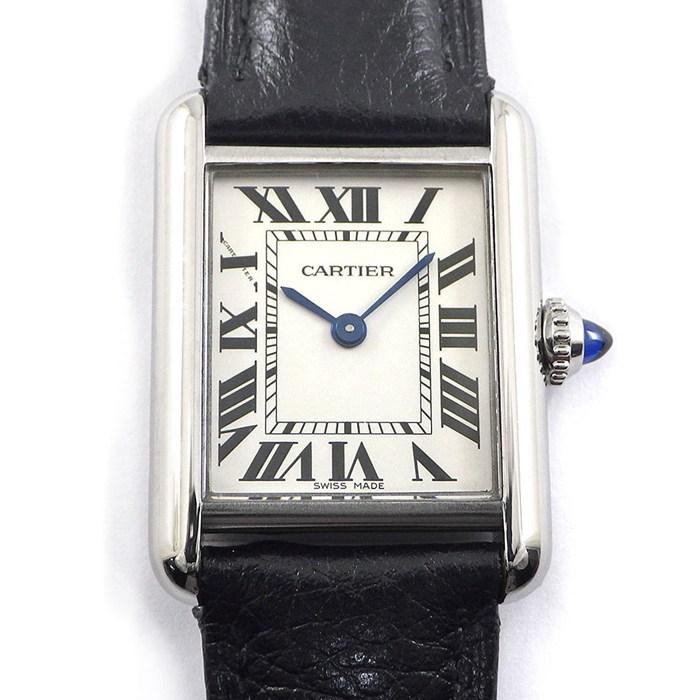 ■商品名Cartier 腕時計 タンク マスト SM WSTA0042 レクタンギュラー シルバー文字盤 SS ブラック グレインド カーフレザーベルト クオーツアナログ 【箱・保付き】 【中古】