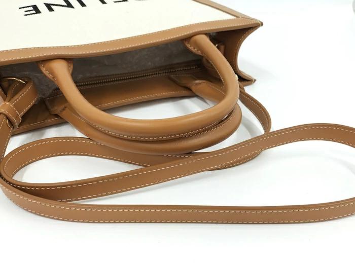 [商品情報]・カラー:アイボリー キャメル系・素材/ライン:キャンバス・サイズ:最大約 W28×H33×D5(cm)・ショルダーの長さ:最大約105(cm)※多少の誤差はご了承下さい。