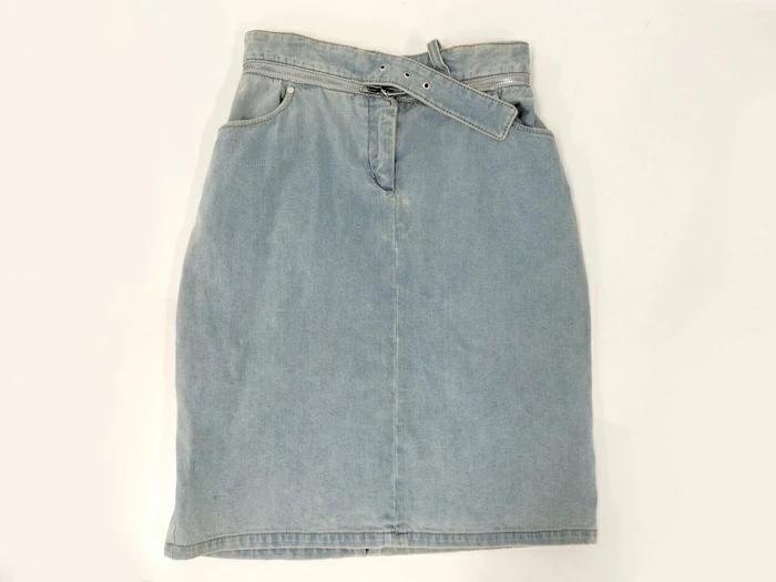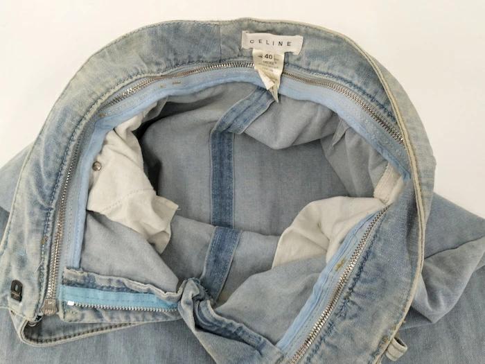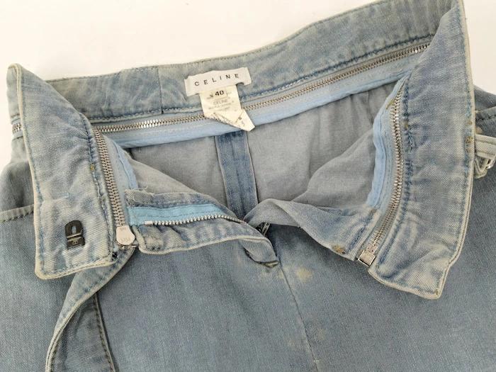 [商品情報]・カラー:デニムブルー・素材/ライン:デニム・サイズ:表記サイズ 40総丈:57(cm)ウエスト幅:35(cm)ヒップ幅:46(cm)裾幅:47(cm)※多少の誤差はご了承下さい。