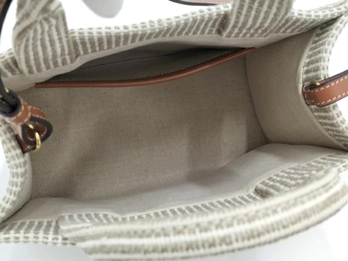 CELINE Small Cabatais 2-Way Handbag in Striped Canvas, Beige and White