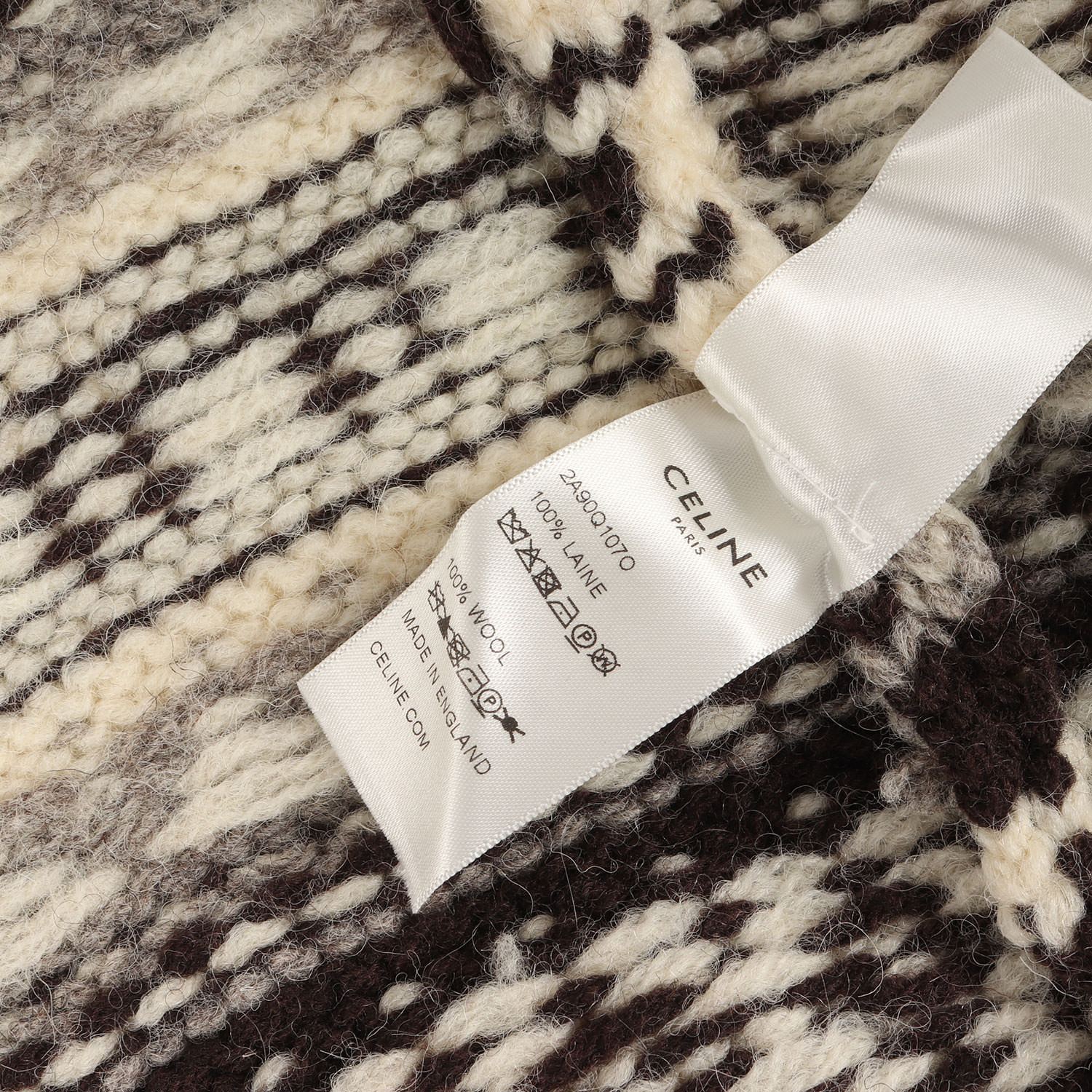 - しっかりとした肉厚のあるローゲージウールニット素材を使用し、全体にノルディックジャガードデザインがあしらわれたVネックカーディガンです。
