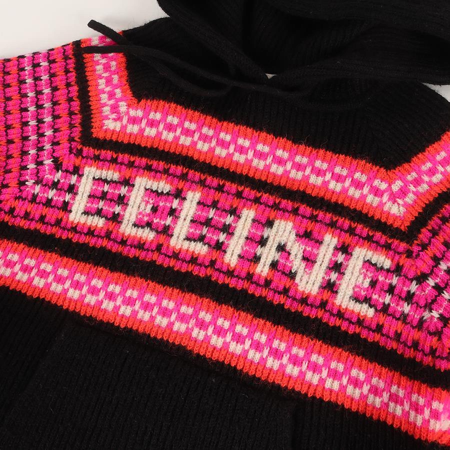 CELINE Embroidery Hooded Sweater in Ski Jacquard Wool (2AC23579S), Black, Size Small, AW 22 Logo Jacquard Knit Hoodie | Made in Italy | Men's Hoodie | Pre-owned | Excellent Condition | K4643