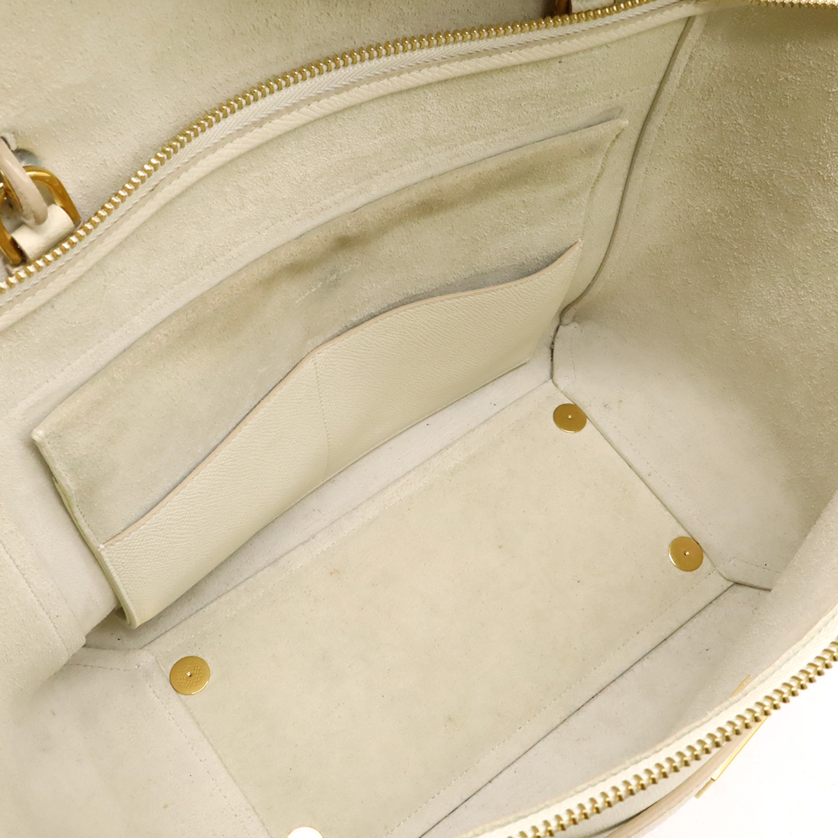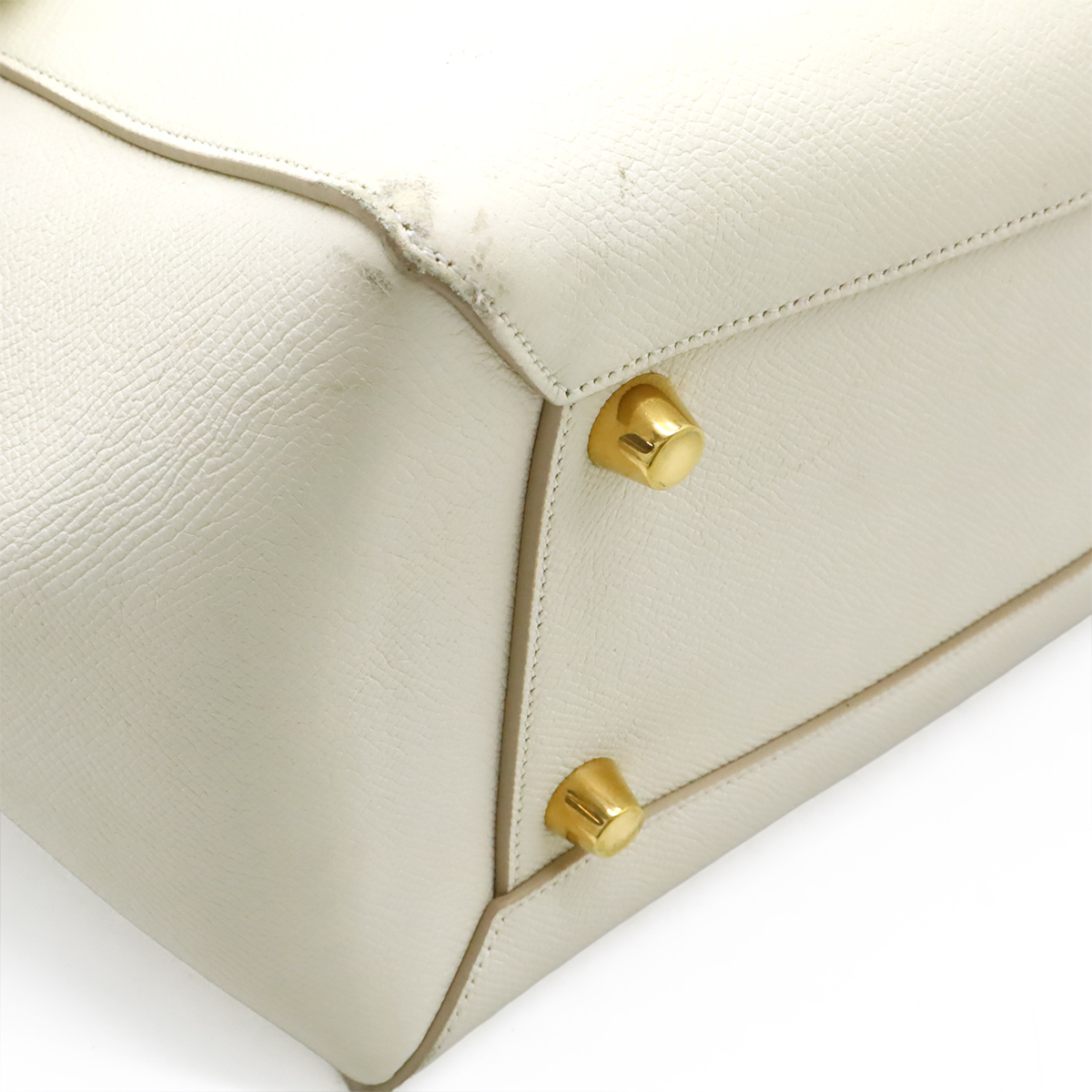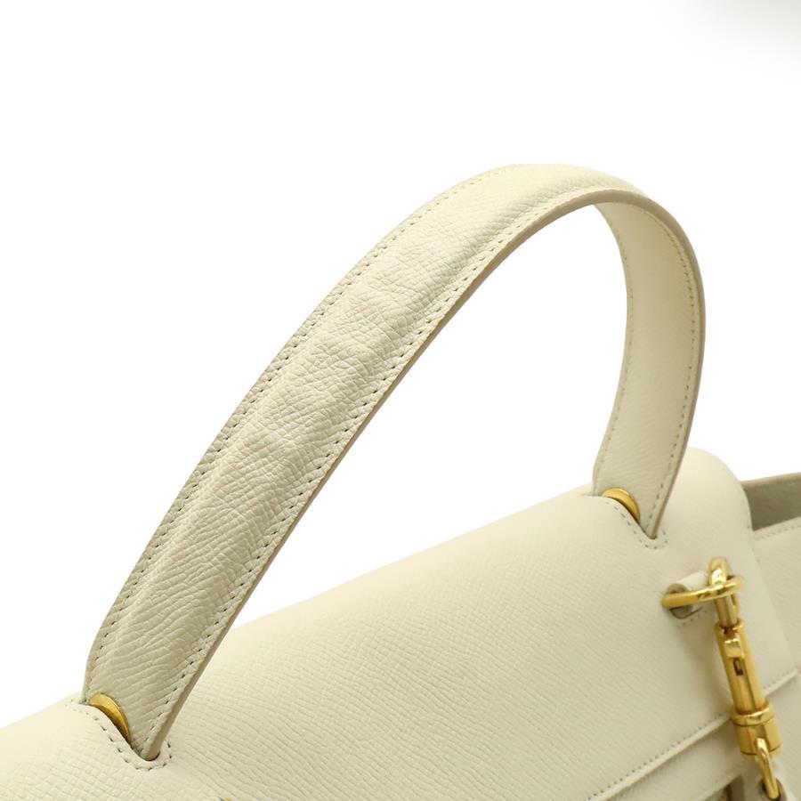 【商品説明】[サイズ]W28cm-38cm H24.5cm D16.5cm ショルダーストラップ長さ約77cm(調節不可、金具含む)[材質]グレインドカーフスキン[カラー]ホワイト[仕様]外側ファスナーポケット1、内側ポケット2[付属品]なし[重さ]約1.1kg