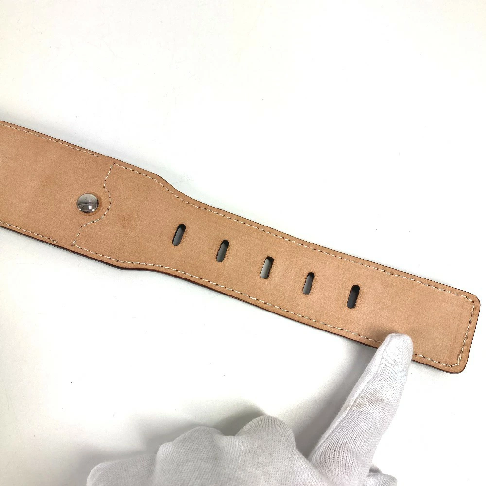 | サイズ | 全長:99cm ベルト幅:4.6cm ウエスト:83cm ~ 91cm 穴の数:5 穴の間隔:2cm 表記サイズ:M 実寸サイズには多少の誤差がある場合があります。 |