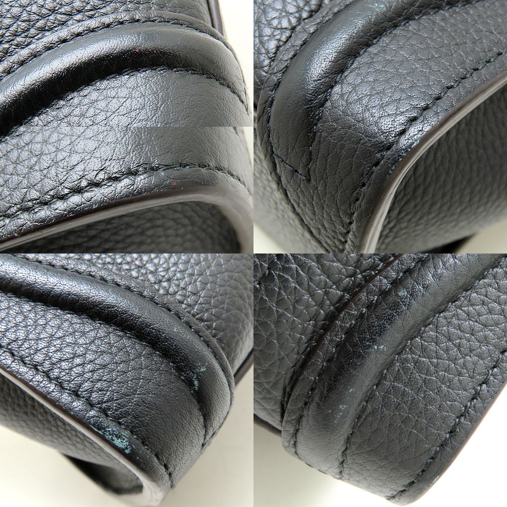 [外・表面] 汚れ / スレ [外・ハンドル] 根元キズ / 根元スレ / 根元のコバにヒビ割れ [外スト・ショルダー] コバヒビ割れ [外・角] キズ / 一部汚れ / スレ [外・縁] 細かなスレ / コバにヒビ割れ [金具部分] 一部付着汚れ [内側] スレ / うっすら汚れ / 毛羽立ち [ファスナー周り] 一部付着汚れ