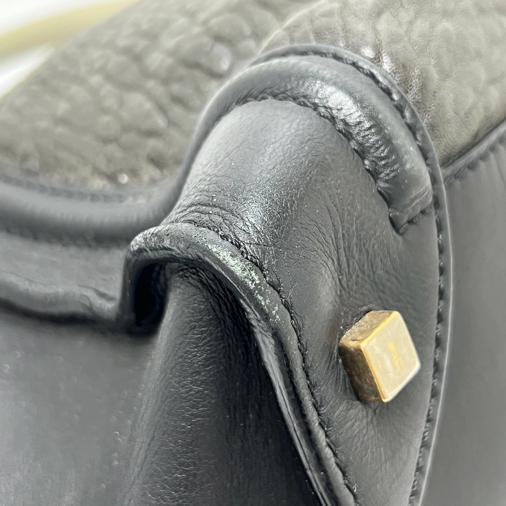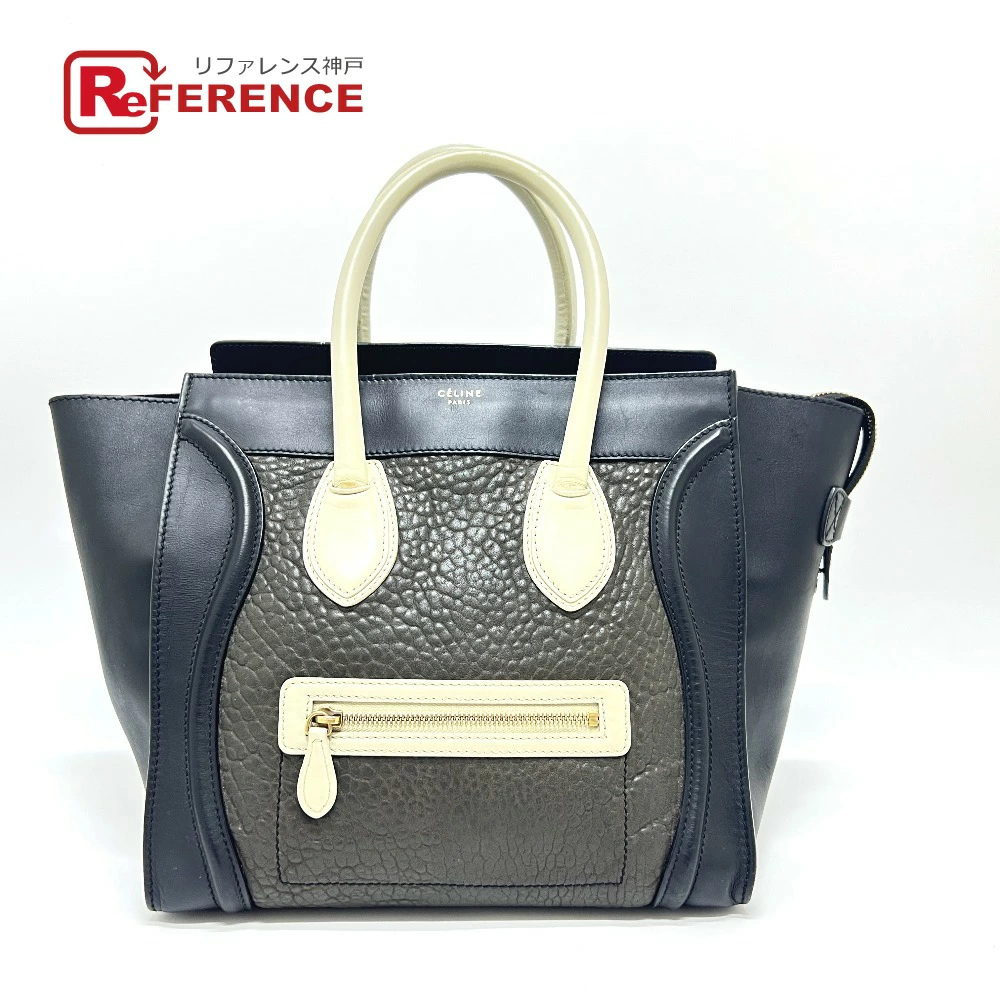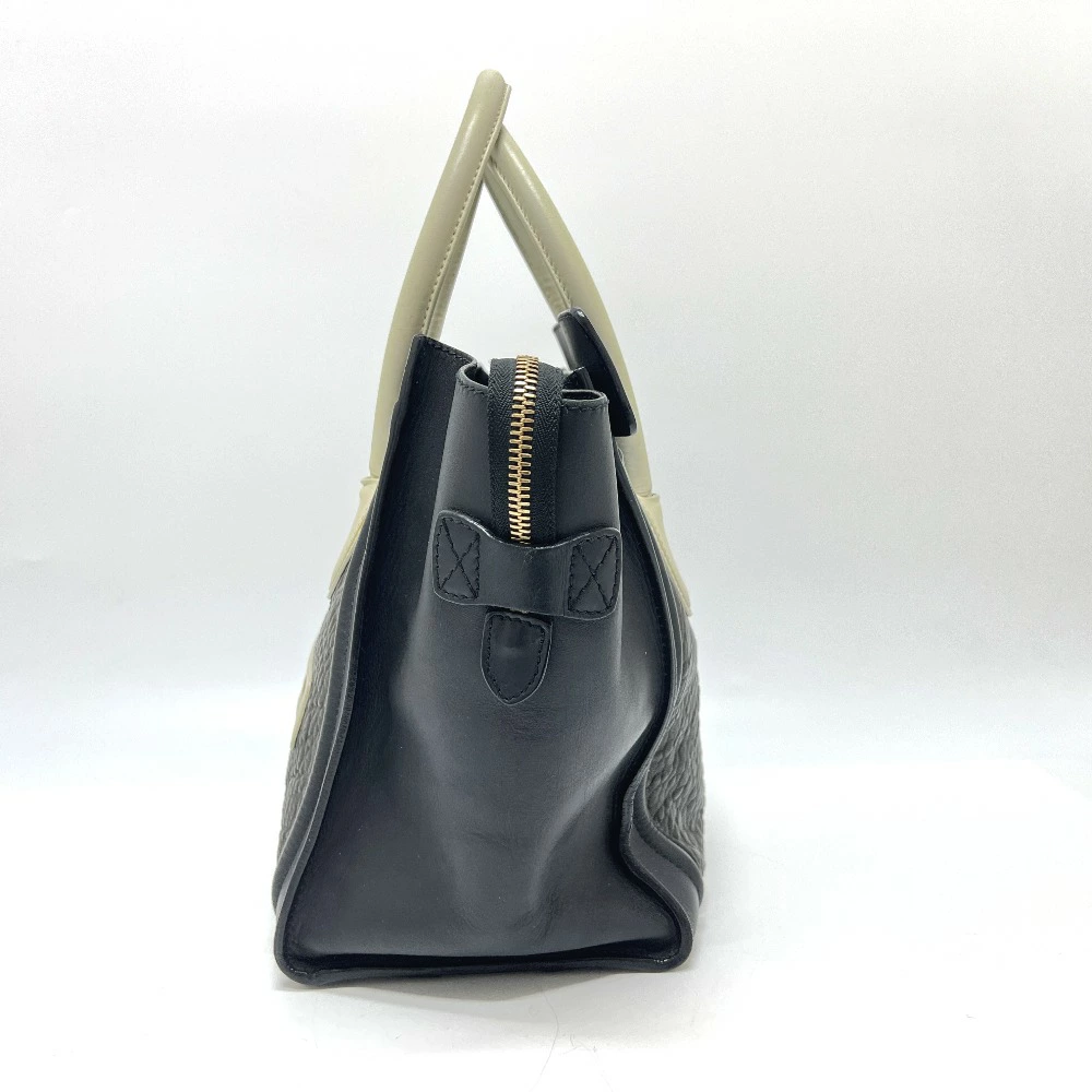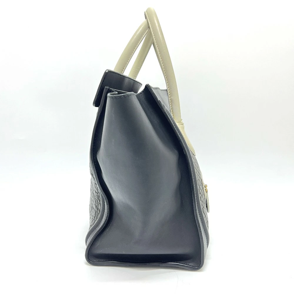 CELINE Luggage Medium Handbag Tote Bag Leather Women's Black x Gray x White Black [Pre-owned]