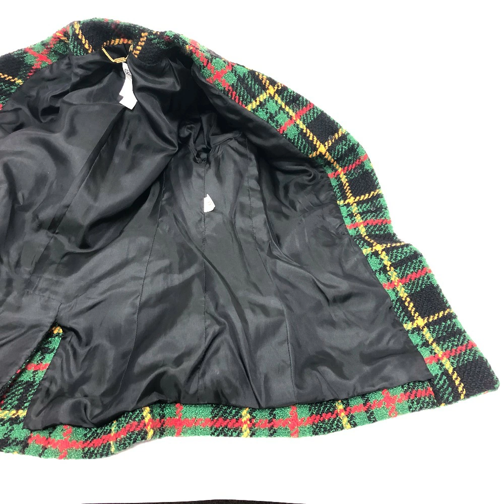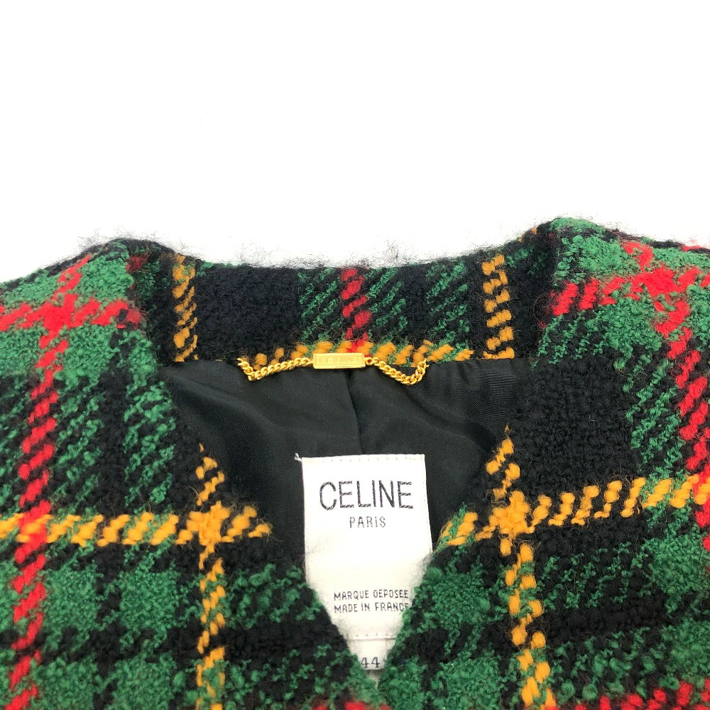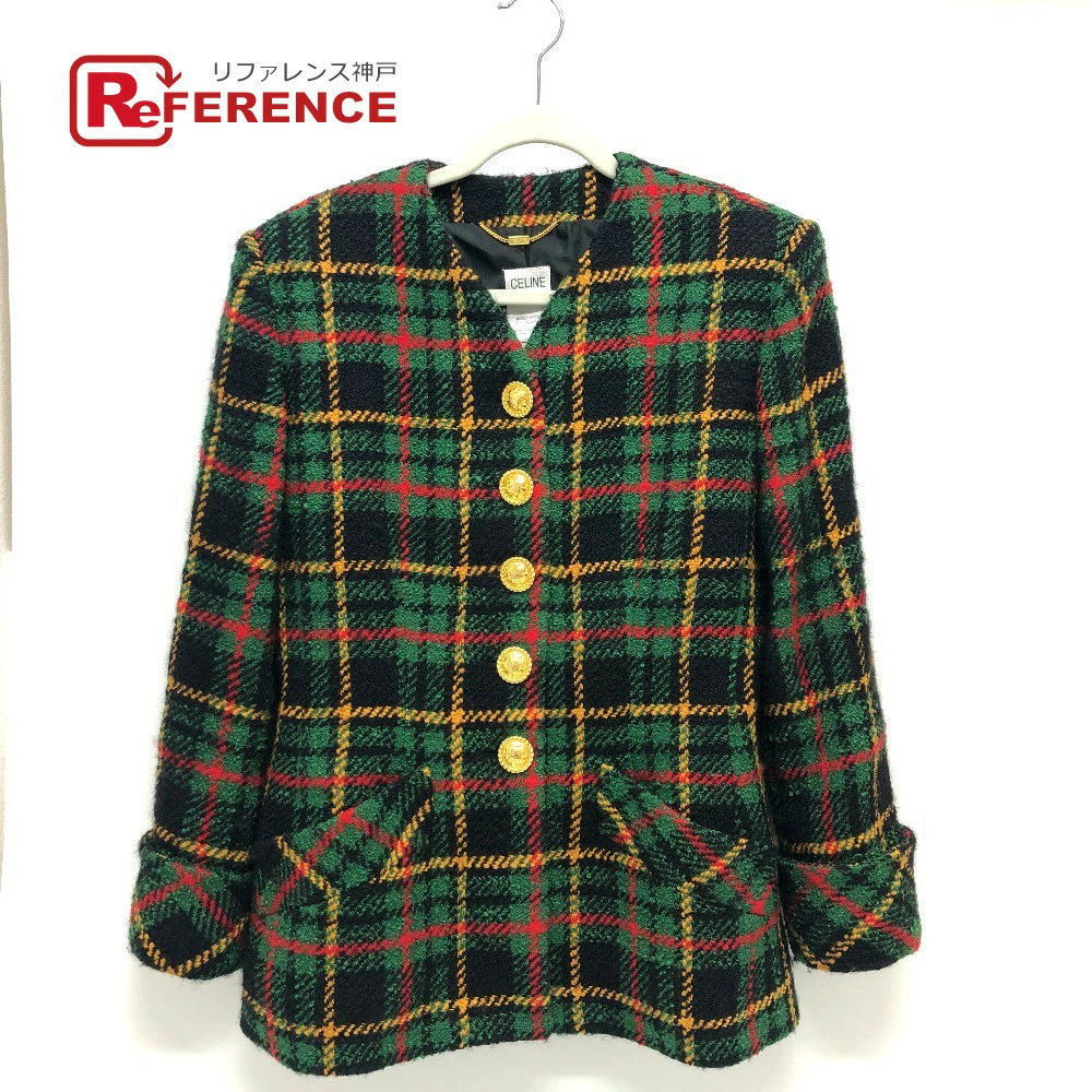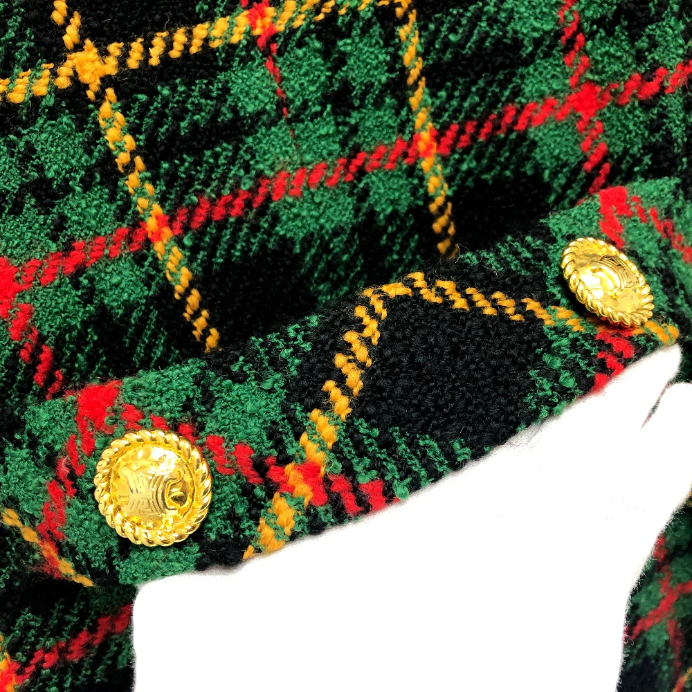 Pre-owned Celine Vintage Check Macadam Button Jacket in Tweed, Green/Yellow/Red/Black.