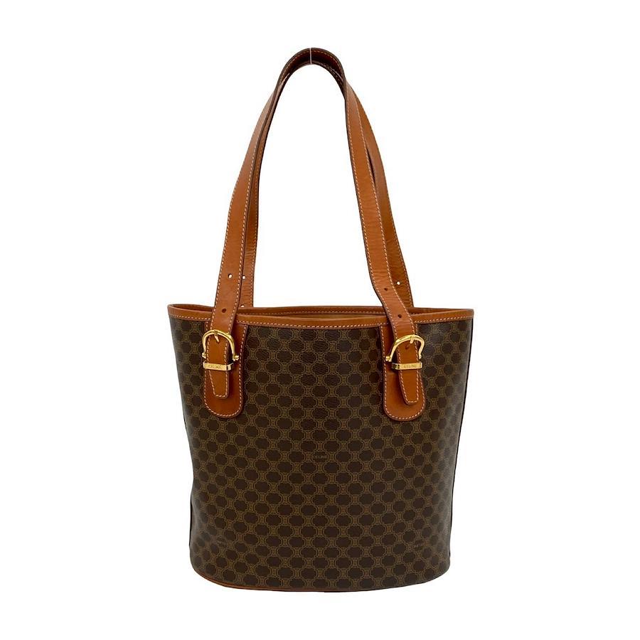 CELINE Vintage Macadam Blason with Triomphe Logo Leather Tote Bag, Brown, 79898