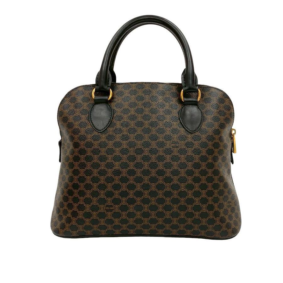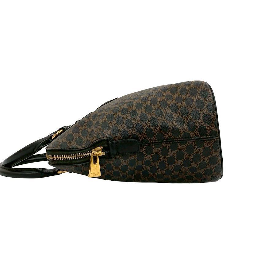 CELINE Vintage Macadam Blason Pattern Logo Leather Handbag/Boston Bag in Black and Brown (018-4)