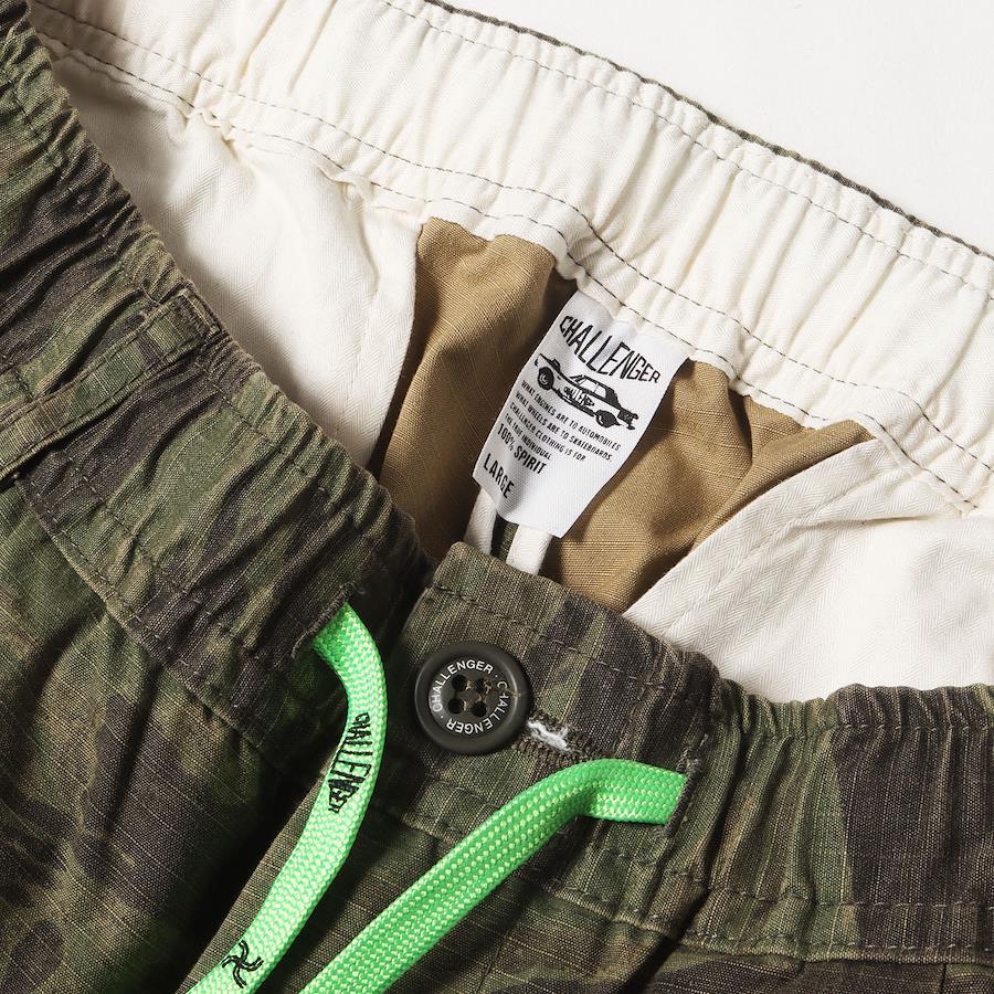 | 商品説明 | タイガーカモ柄のコットンリップストップ生地を使用したジッパーフライイージーパンツです。ボディには強めのウォッシュ加工が施されております。 |