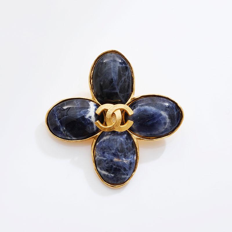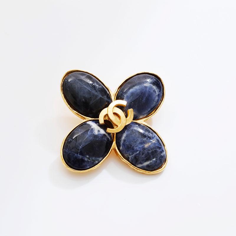 CHANEL Coco Mark Stone 95A Brooch Blue WS21528